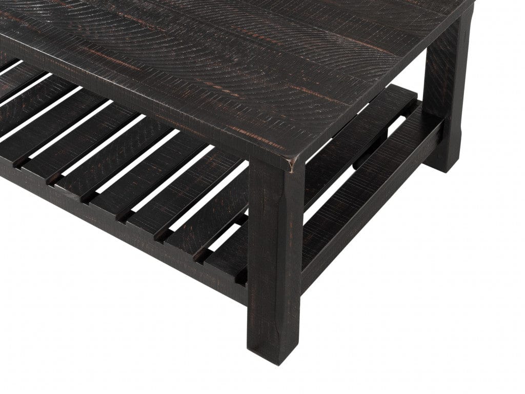 42" Antique Black Solid Wood Rectangular Distressed Coffee Table With Shelf
