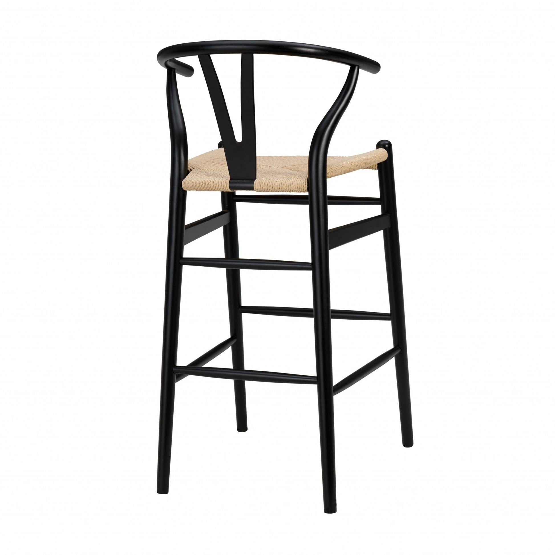 Bring updated casual elegance to your home with the Black Solid Wood Counter Stool with Natural Seat. This fashionable stool is designed with a natural woven rush seat and sturdy solid wood frame in a modern black finish. This comfortable and good looking stool is a great addition to your kitchen, lounge, or bar area. 42.13" X 20.08" X 20.87"
