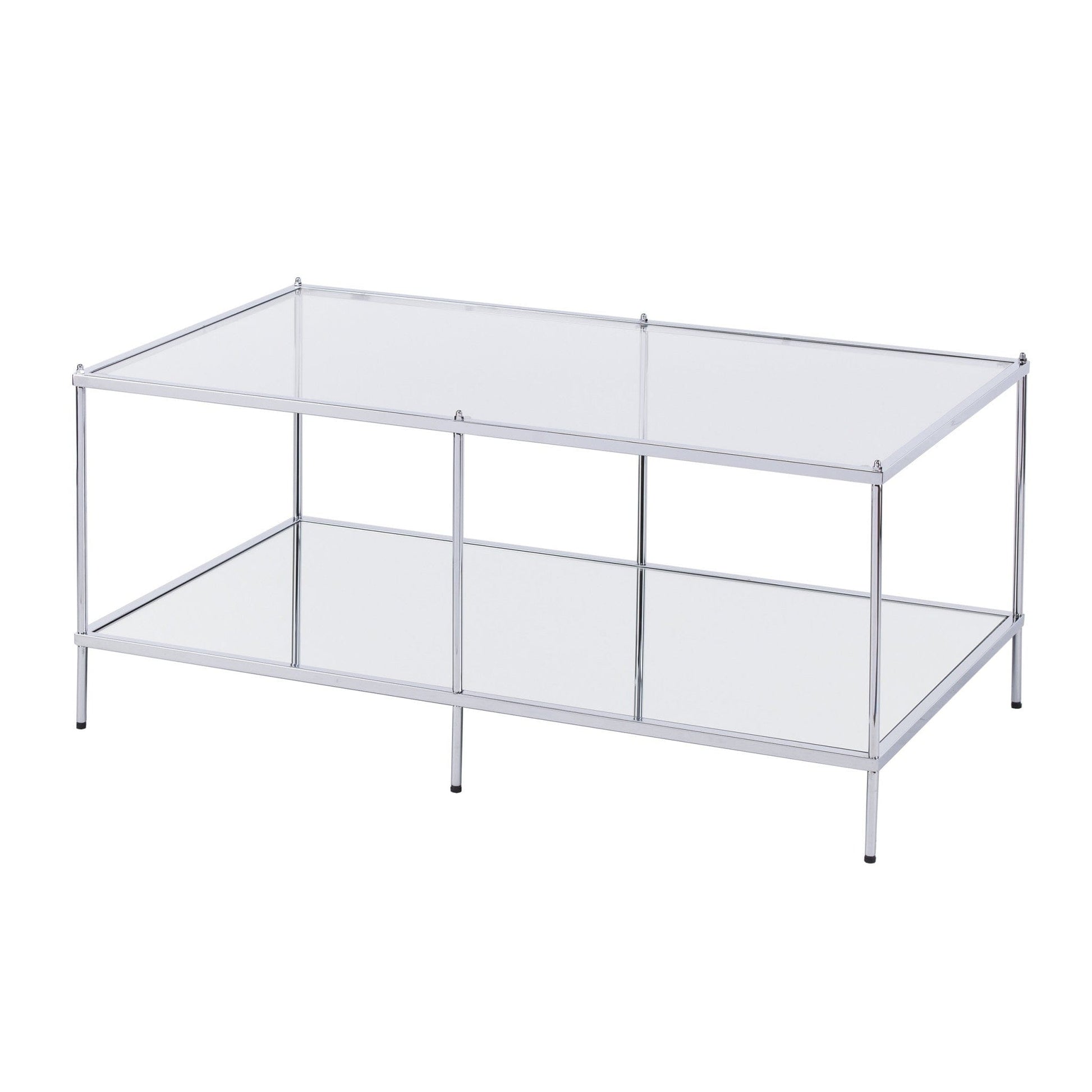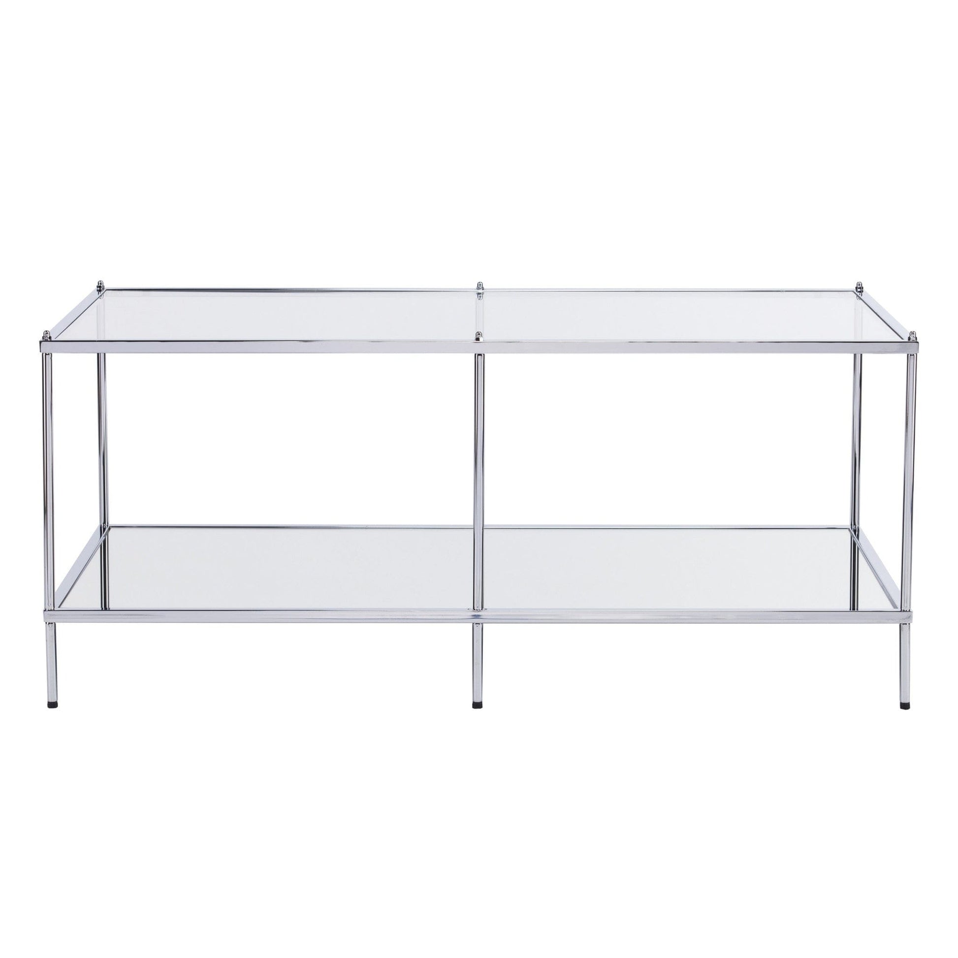 42" Chrome Glass And Metal Rectangular Mirrored Coffee Table