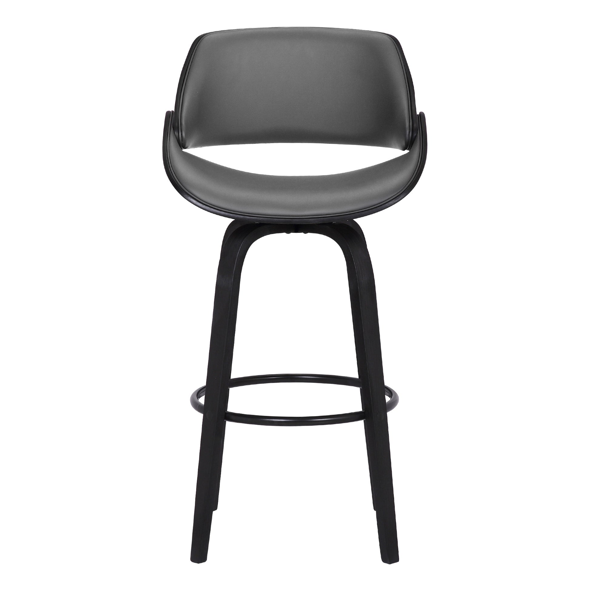 42" Gray Faux Leather And Iron Swivel Bar Height Chair
