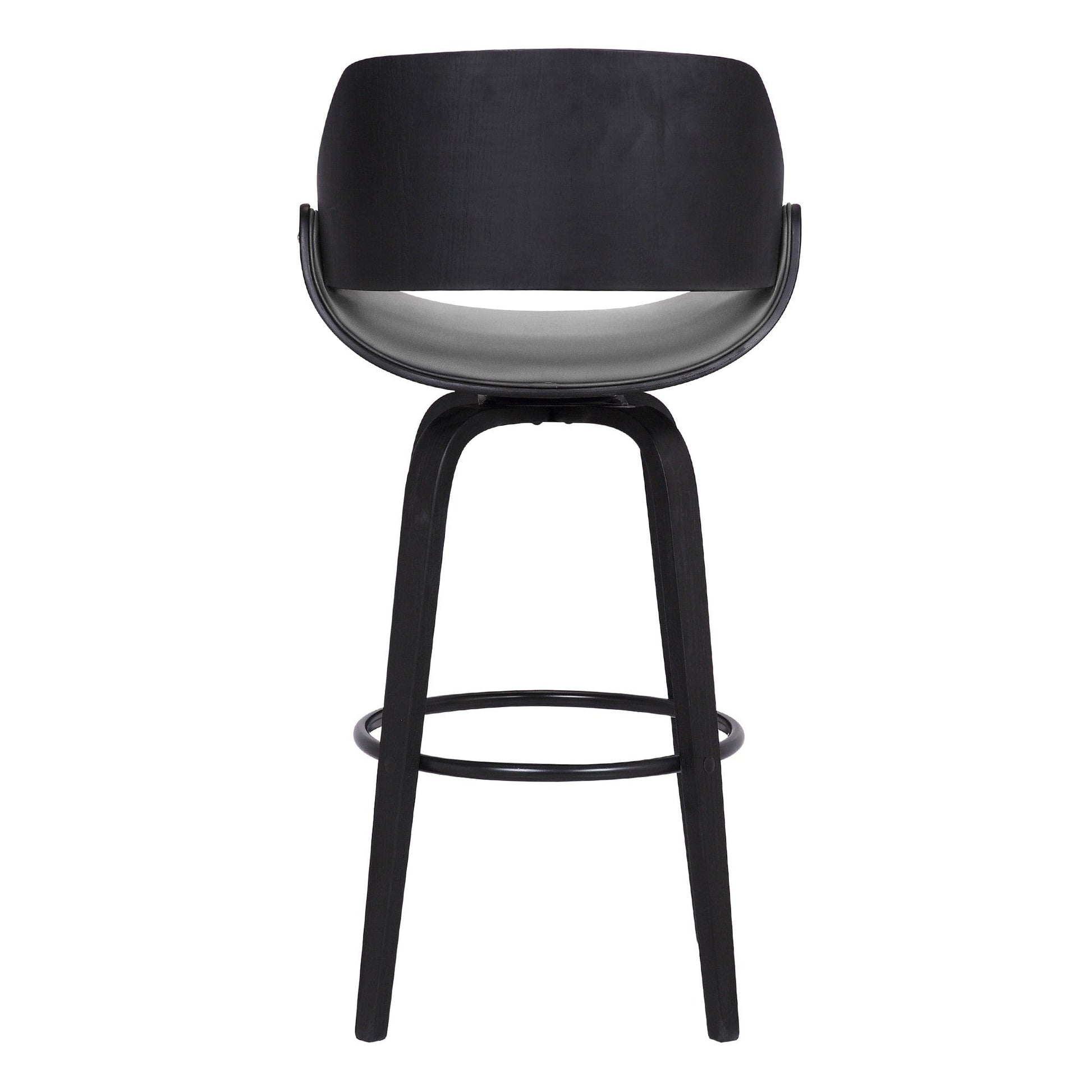 With this 42" gray faux leather and iron swivel bar height chair you can add design and extra seating to your space. Quality construction from black iron combines with gray faux leather to give this stool a fresh and updated look. The round shape of the seat combines with a full back to give this chair a comfortable and fashionable look. This stool will look great in your dining room, kitchen, bar, or recreation room. 41.5" H x 20.5" W x 19.5" D