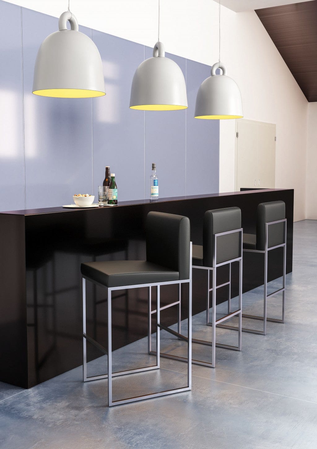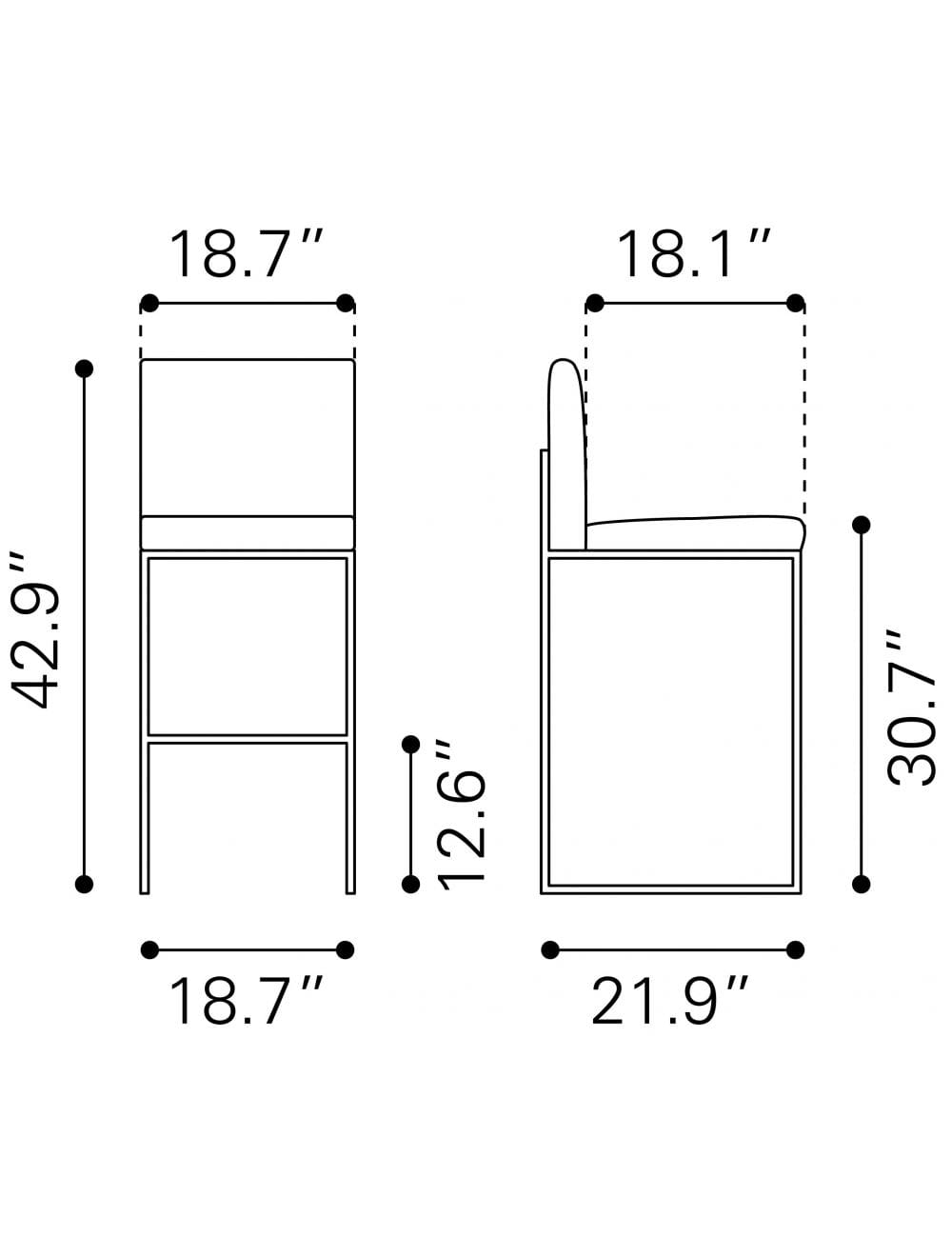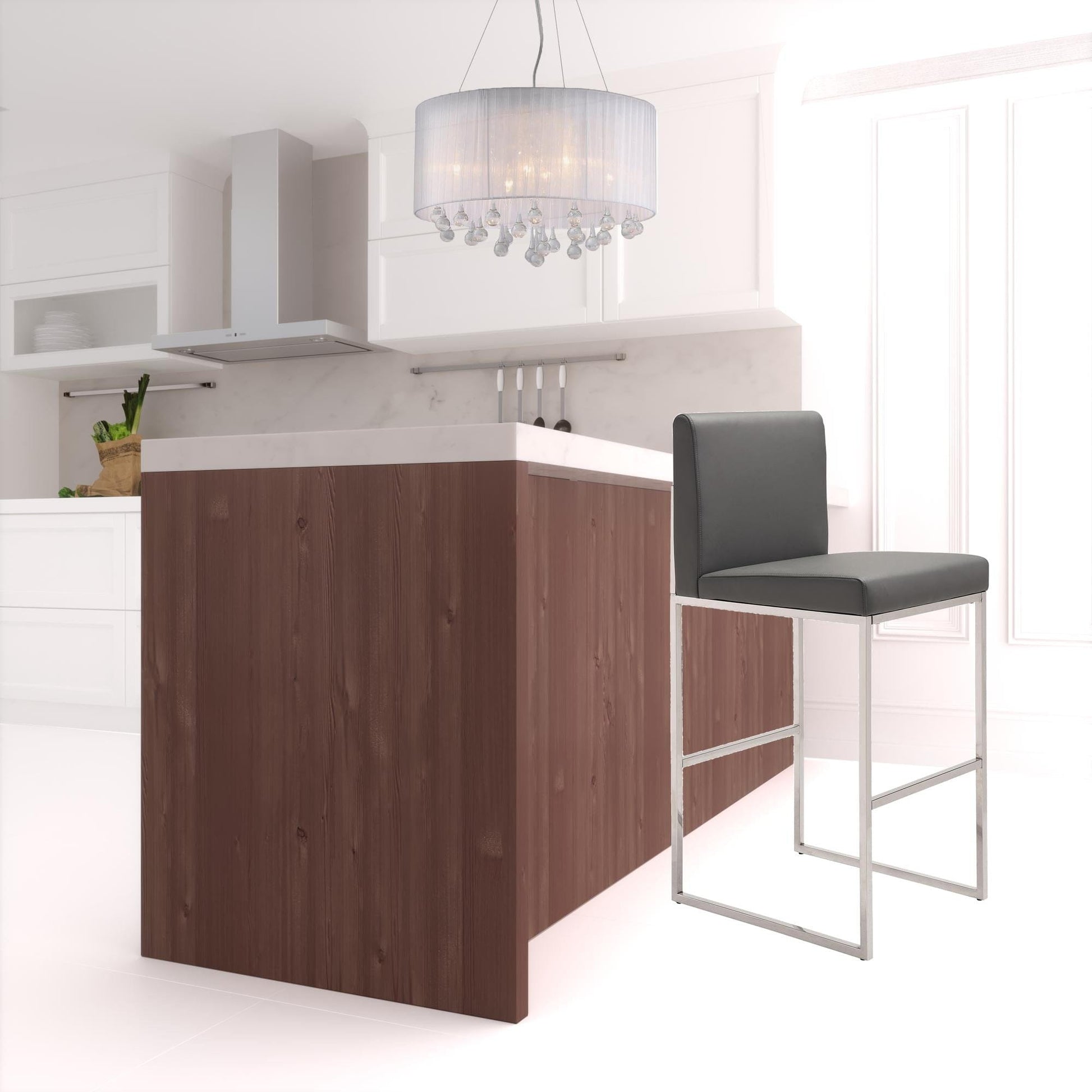 This 43" gray faux leather and chrome low back bar height chair with footrest will be the perfect way to add some cool design and utility to your space similar to what you find in your favorite modern or contemporary cafes. The gray faux leather of this stool is a nice contrast to the high quality, silver steel of the base frame and legs. A low back mixed with a wedge shaped seat design makes this chair both comfortable and fashionable. Designed with a footrest for comfort and convenience. 42.9" H x 18.7" W x 21.9" D