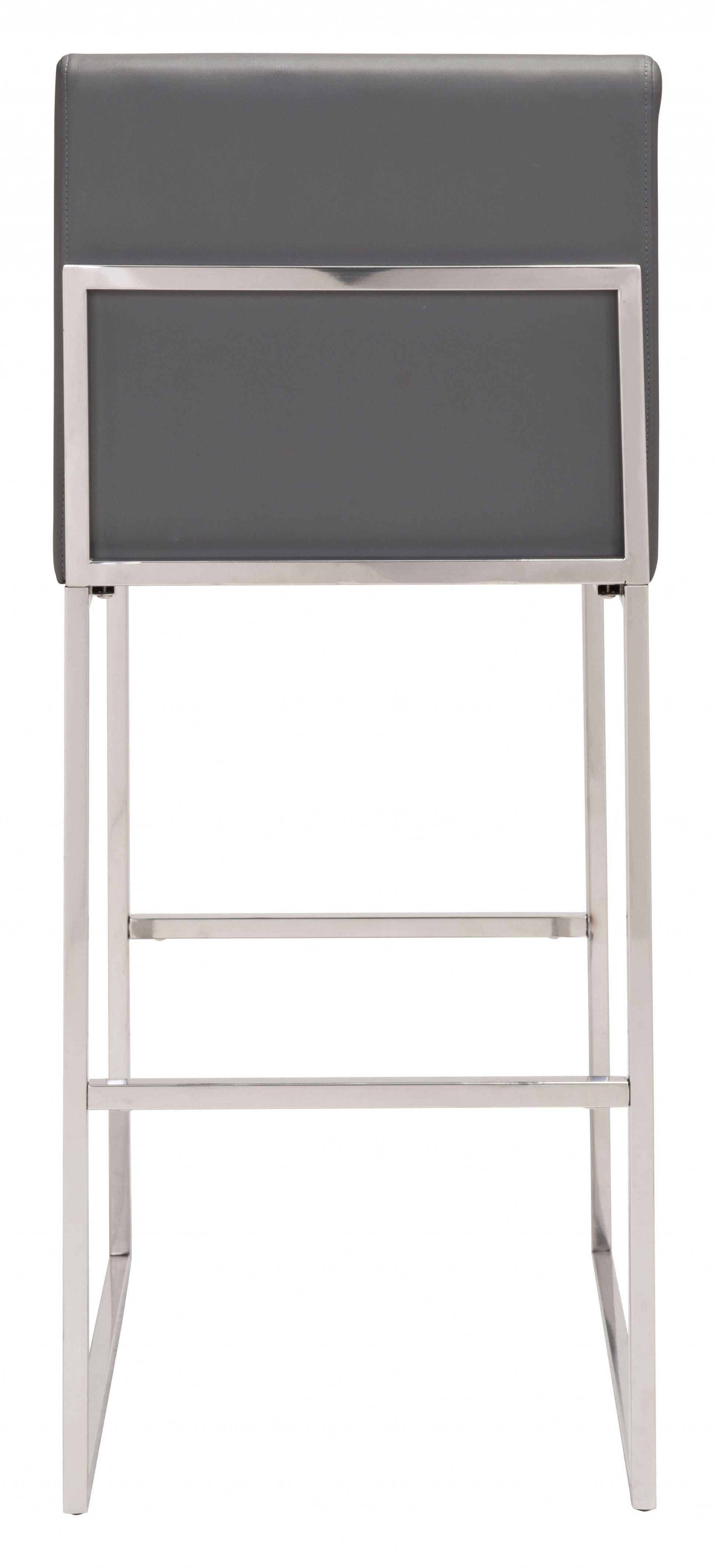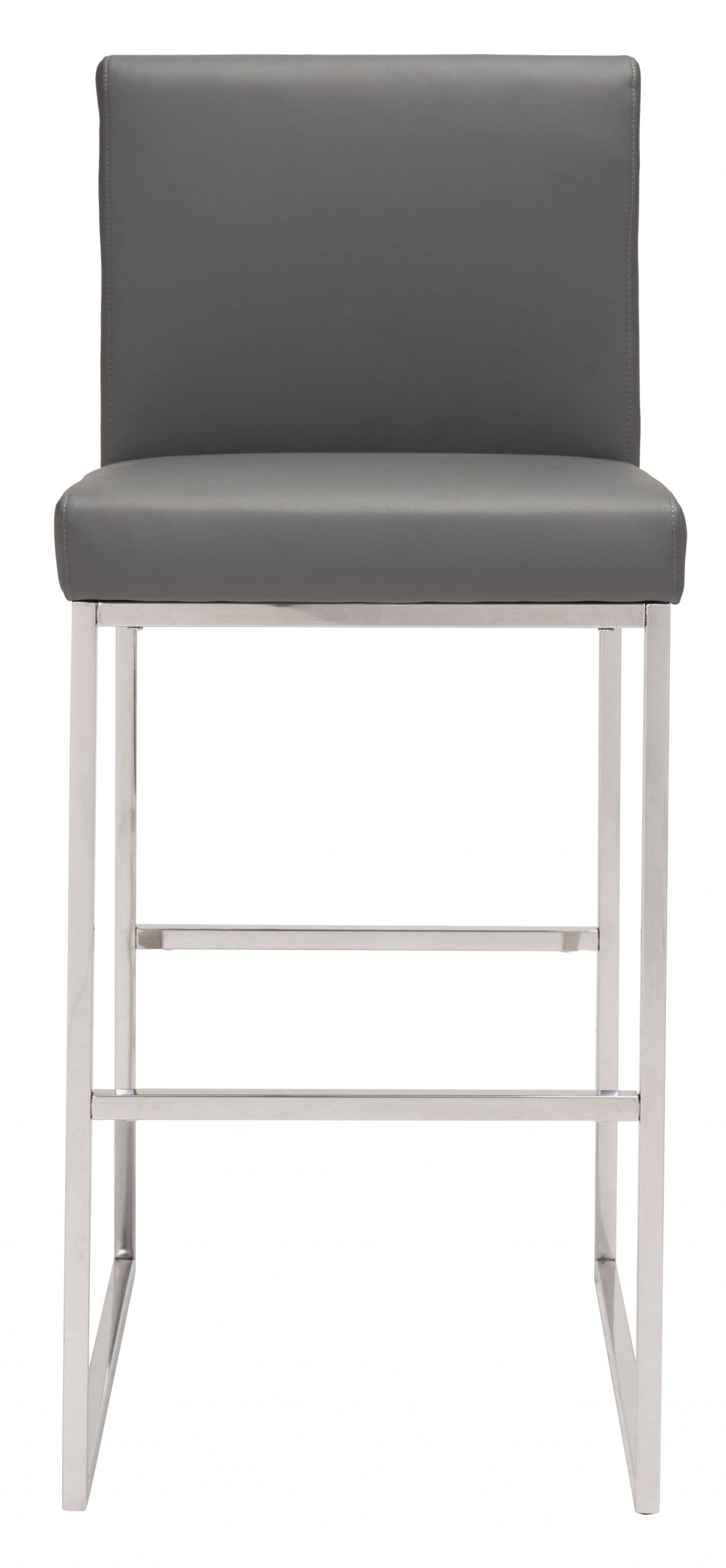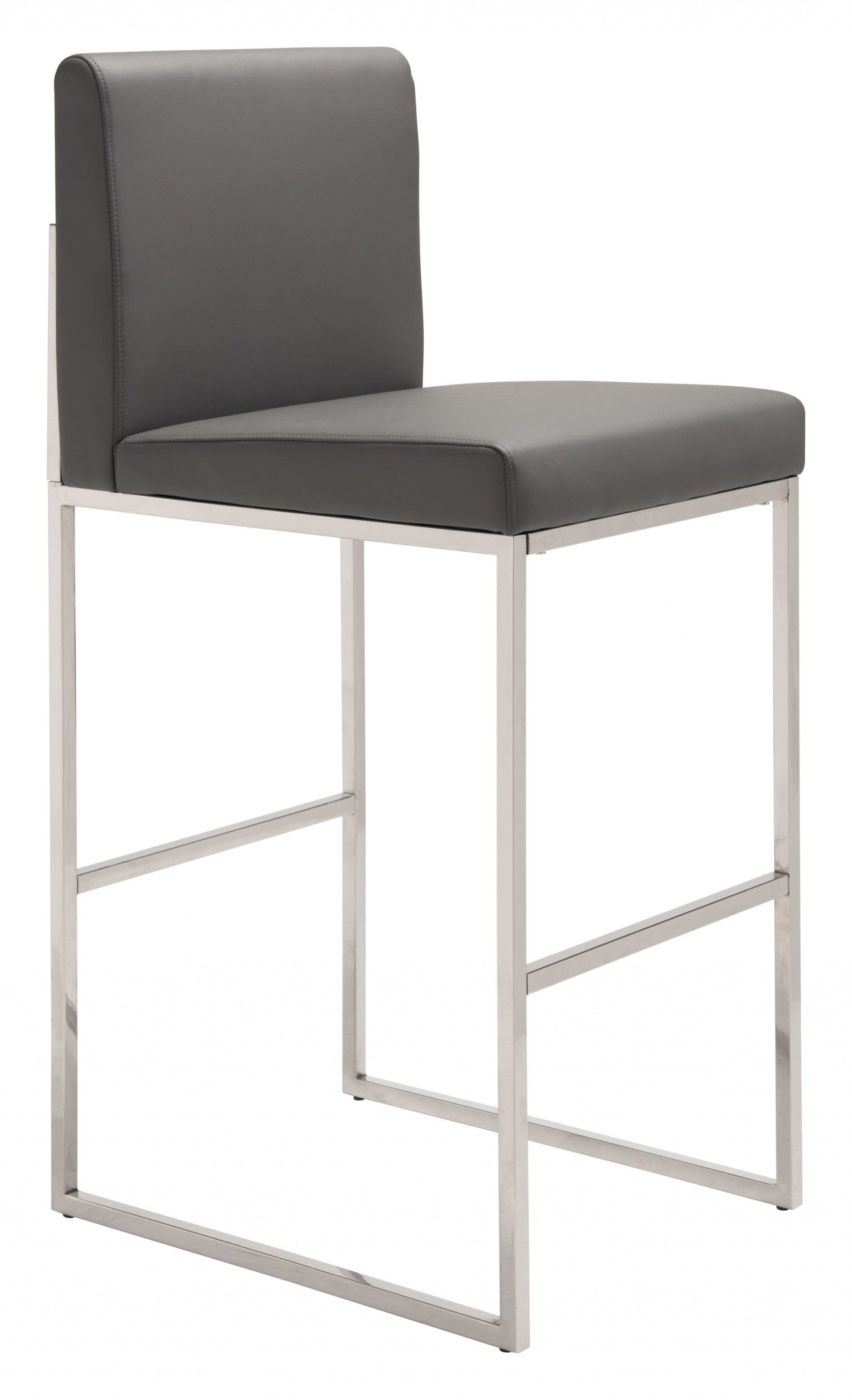 43" Gray Faux Leather And Chrome Low Back Bar Height Chair With Footrest
