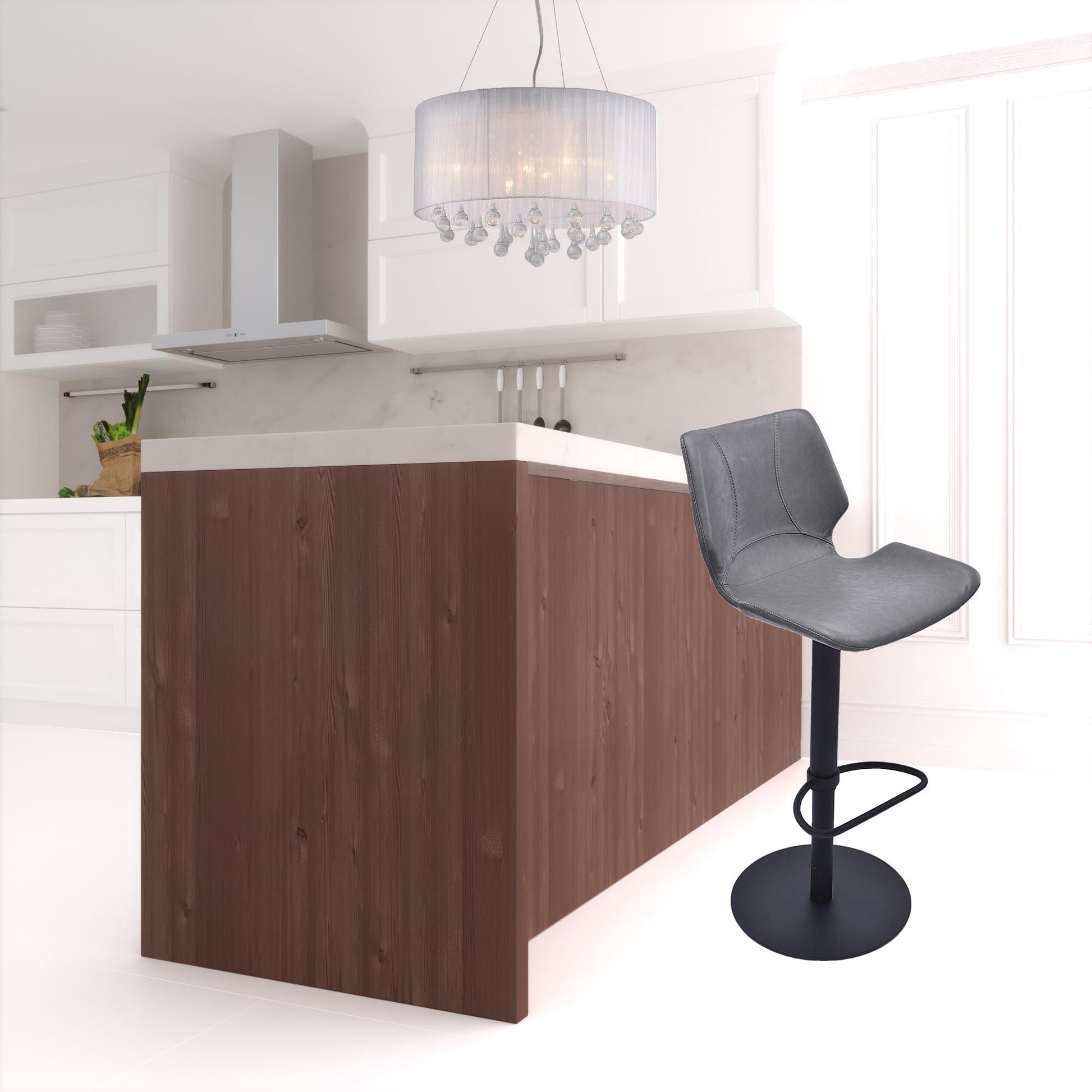 Comfortable enough to sit in for awhile, this 43" vintage gray faux leather and iron swivel adjustable height bar chair will transcend the look of your room. Quality construction from matte black metal iron combines with vintage gray faux leather to give this stool a fresh and updated look. A full back mixed with a round shaped seat design makes this chair both comfortable and fashionable. This stool will look great in your dining room, kitchen, bar, or recreation room. 43" H x 20" W x 17" D
