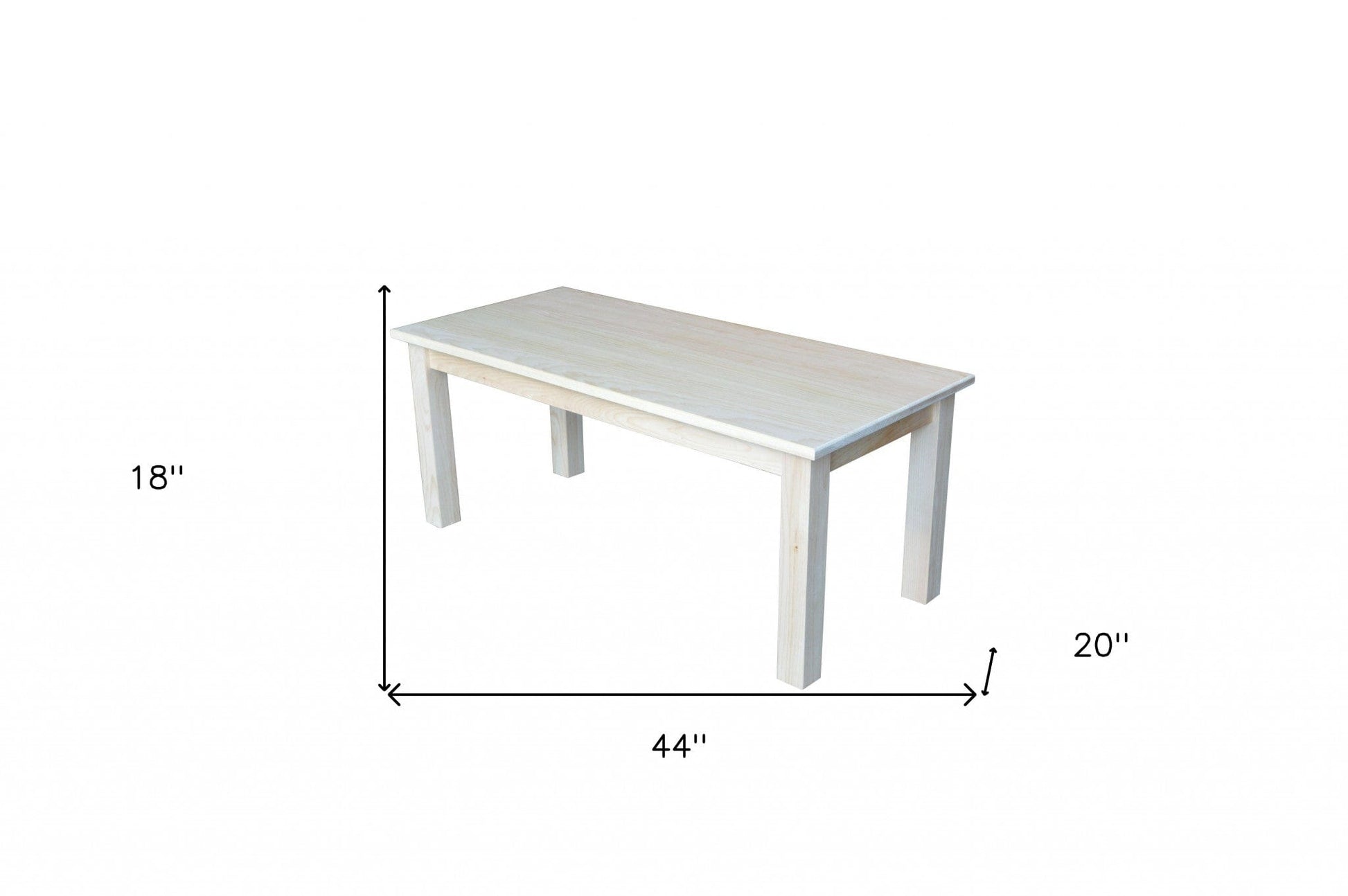 44" Unfinished Solid Wood Rectangular Coffee Table