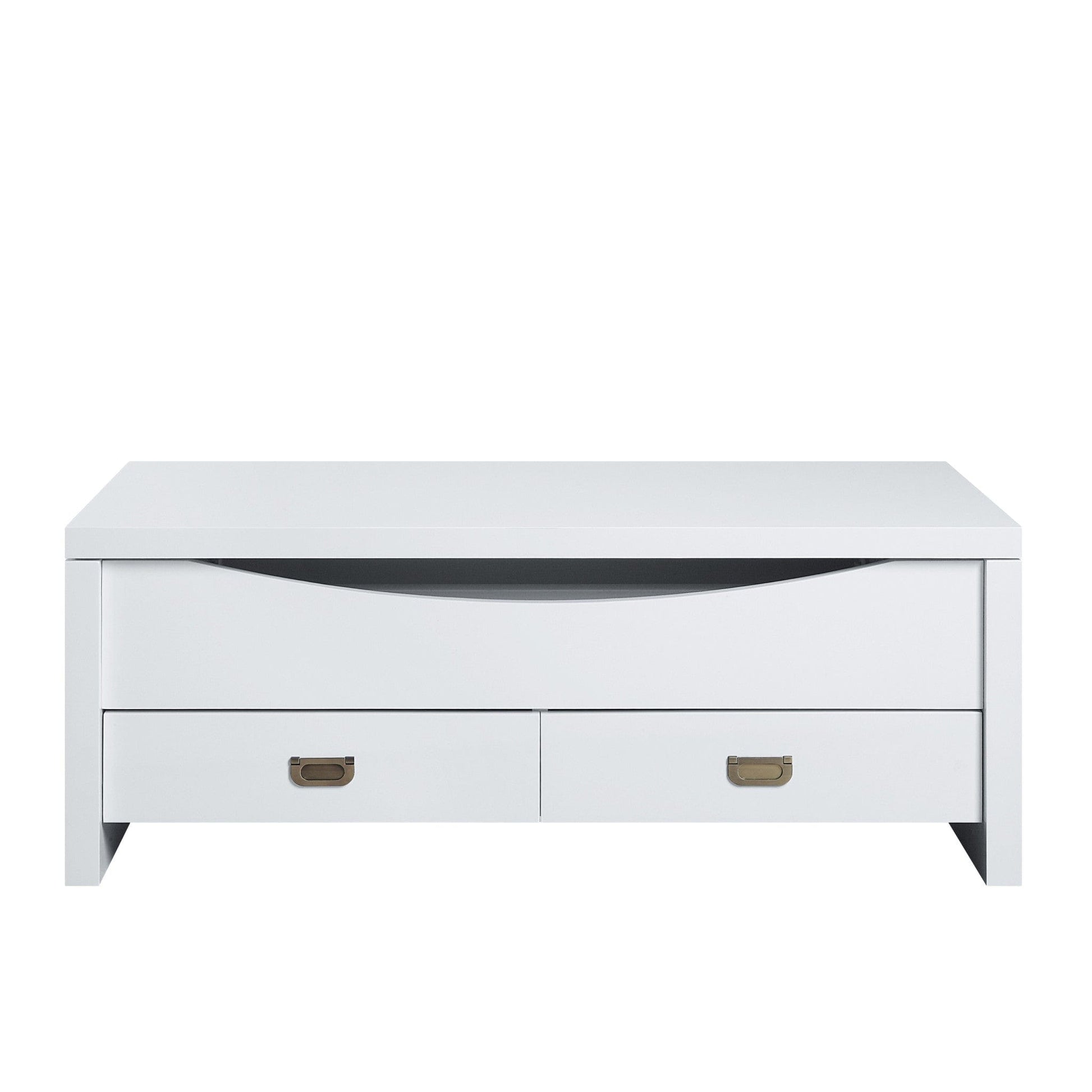 This good looking 45" white manufactured wood rectangular lift top coffee table with two drawers is sure to inspire compliments no matter where it sits. This table features quality construction from manufactured wood and an updated monotone color scheme with white as the main color on both the top and the base. This classic rectangular table will be a great accent in any room It has a fresh design that will definitely breathe some fresh air into your interior. This coffee table is the sturdy, reliable and stylish answer to your living room needs. 17" H x 45" W x 24" D