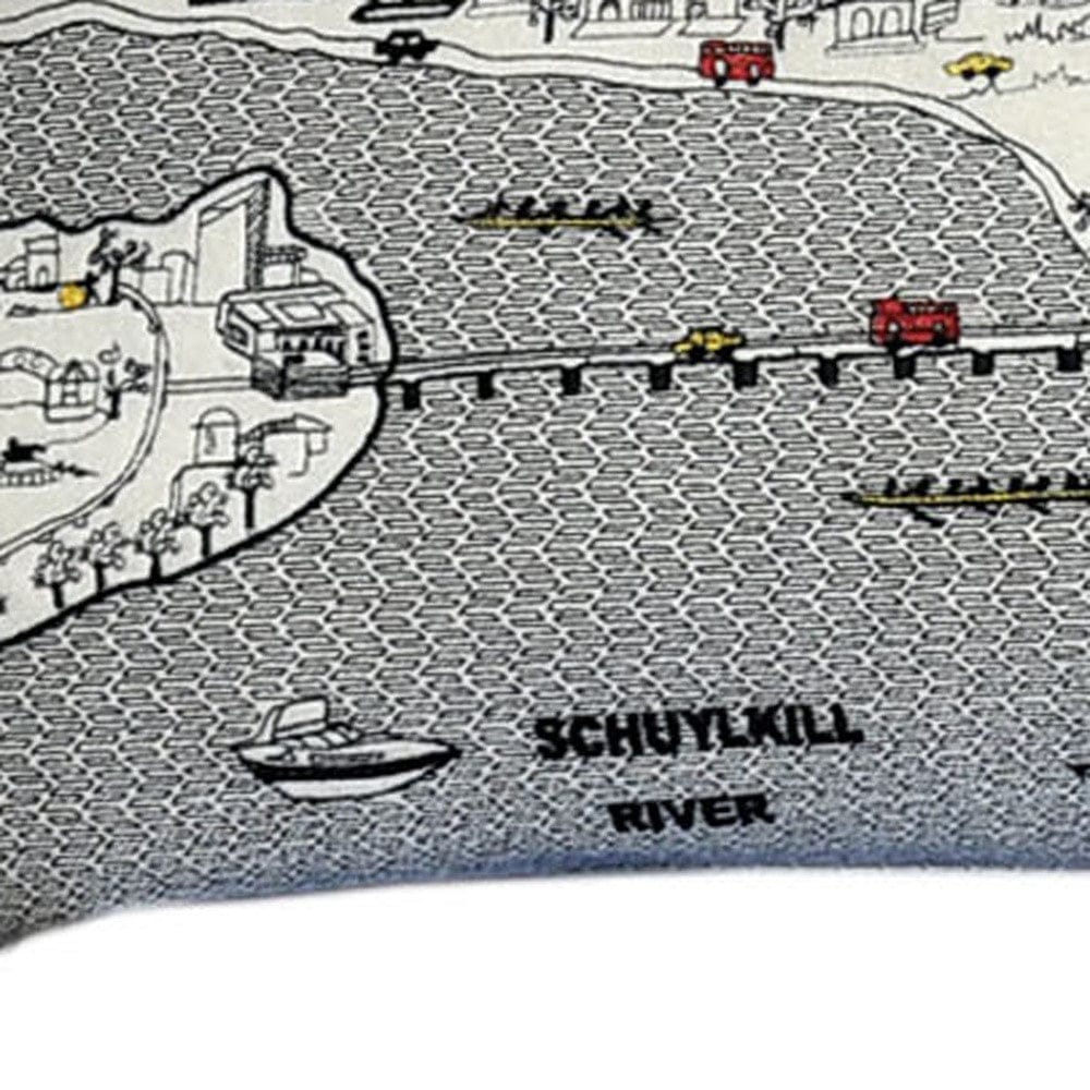 Showcase this famous city, with our Cream Color Philadelphia Daylight Skyline King Size Lumbar Decorative Pillow. The daylight view of the Philly shore line from the Schuylkill and Delaware Rivers is picturesque. The gorgeous art features many famous landmarksand references, rendering a modern whimsical way to bring this iconic cityscape to life. Made of a wool/nylon blend, this high quality stitched decorative pillow features black on white embroidered artwork mixed with pops of color that highlight important and recognizable icons from this fabulous city. This pillow makes a great gift, decorative accent and conversation piece. 4" x 45" x 14"