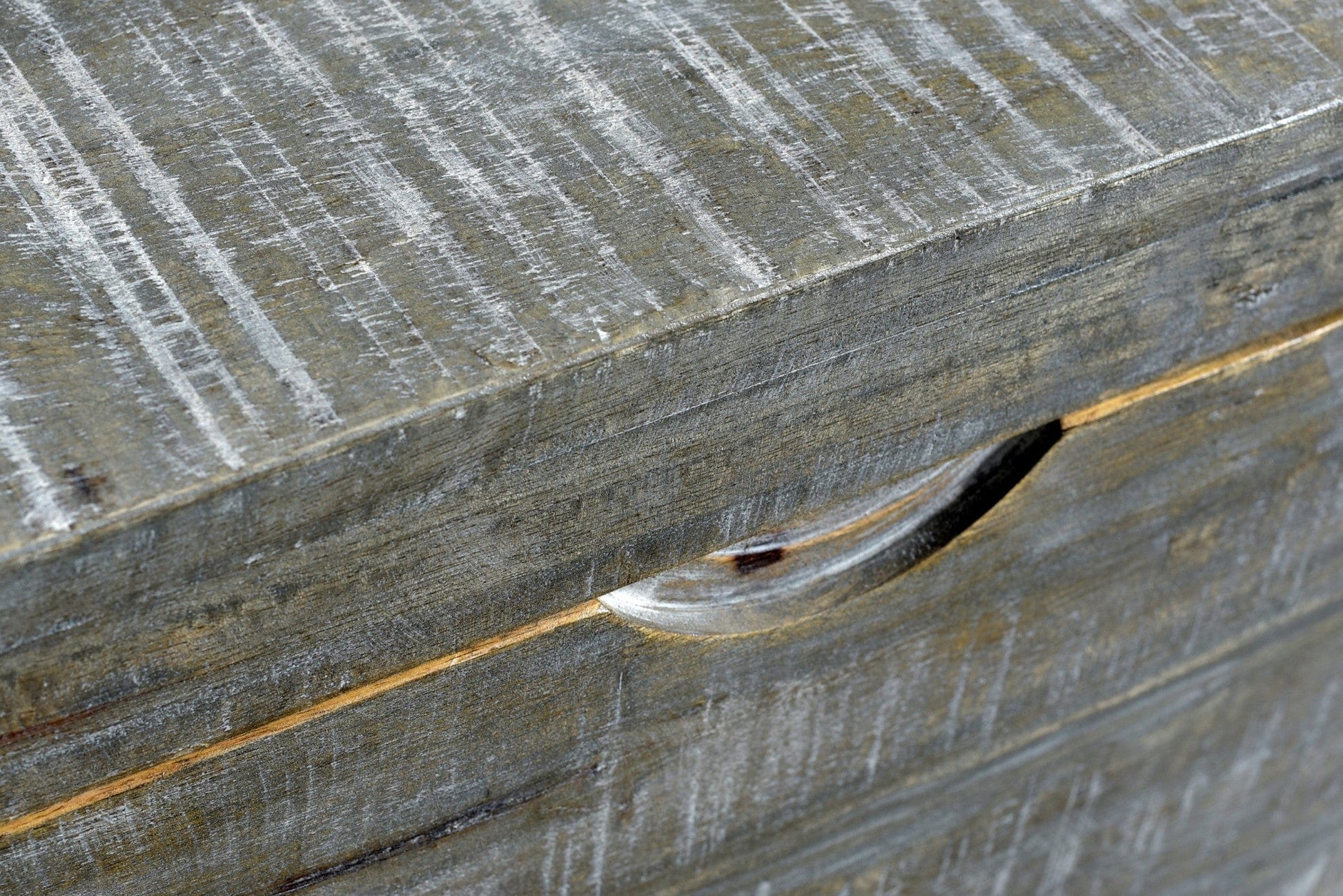 Optimize your space and add some charm to your room with the 46" rustic whitewash/gray and black solid wood entryway bench with flip top. The gray solid wood top of this bench is a nice contrast to the high quality, black metal of the base. The purposefully distressed finish gives this versatile bench an authentically rustic feel. A convenient flip top gives this bench multi-functionality to house hidden storage to help keep your space neat and tidy. Ideal for entrance foyer, hallway, or laundry room this bench is a great place store your keys, put on your shoes, or be a catchall on your way in or out Benches don't have to be unsightly. Increase your seating, potential storage or display space, and the fashion quotient of your room all at the same time with this hard wearing, versatile, and good looking bench. 17" H x 46" W x 15" D