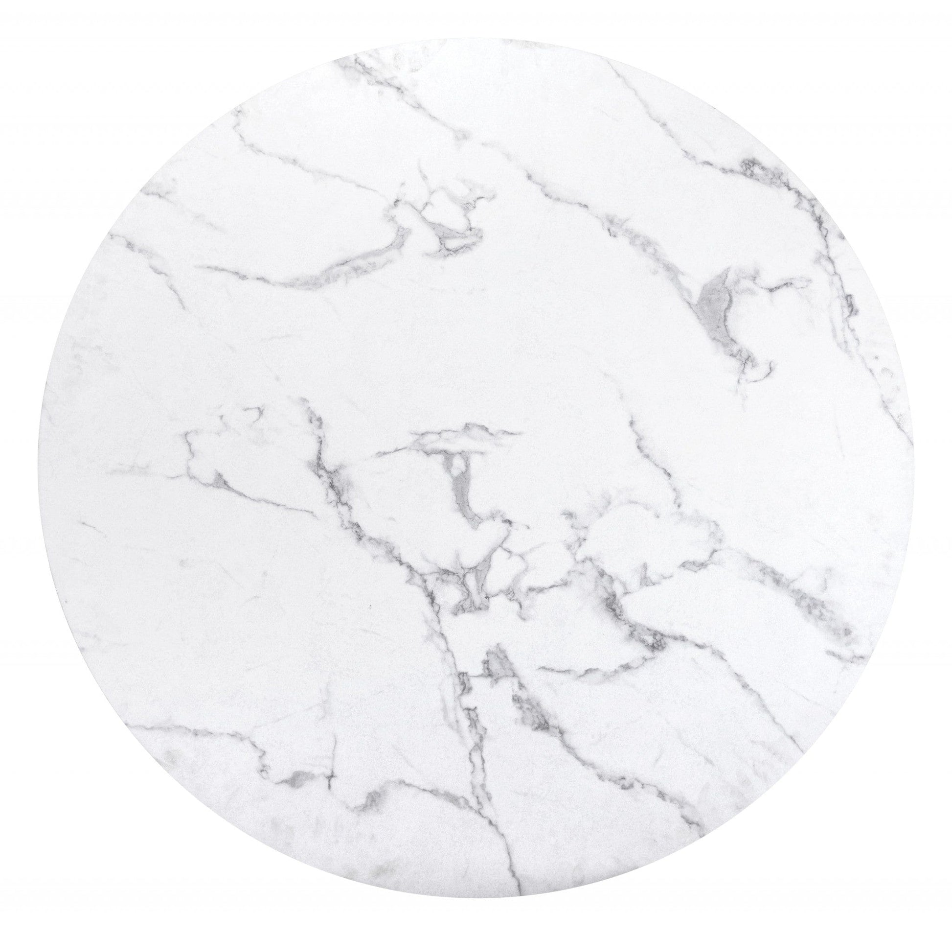 47" White Faux Marble Print And Black Round Dining Table