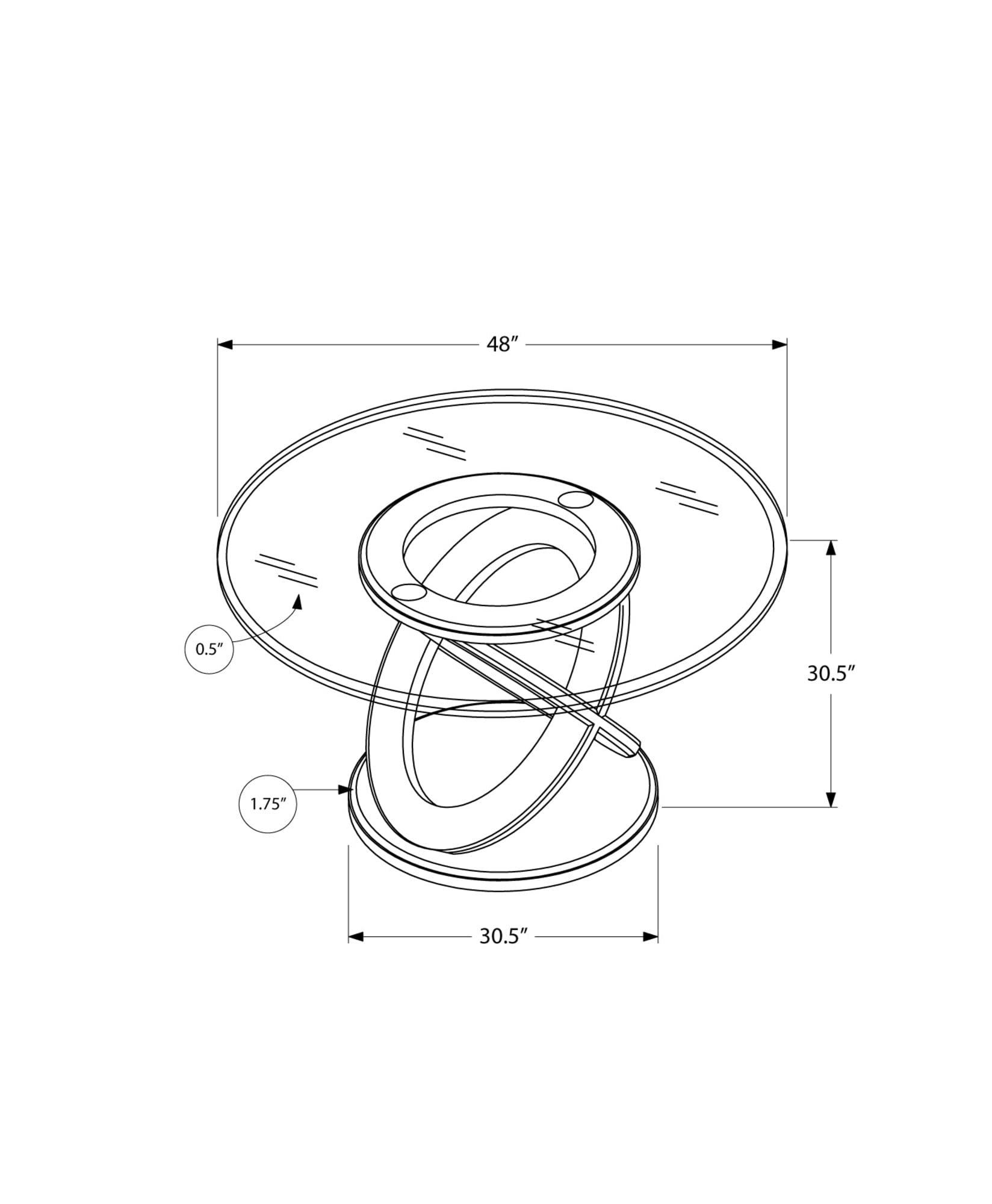 Improve your dining room by with it a bit of class with this circular shaped dining table. It has a contemporary and sturdy design that will definitely diversify your interior and remove any hint of monotony. Not to mention how obviously well-made it is. This dining table is expertly made from solid wood, tempered glass, and MDF. It's fantastic for making the place livelier. It's also highly practical besides just standing out with its looks. As for measurements, they are 30.5' for height, 48' for width, and 48' for depth, and it weighs 116 pounds. With this dining table, you'll get a warm and inviting piece for your living room, bedroom, or dining room.