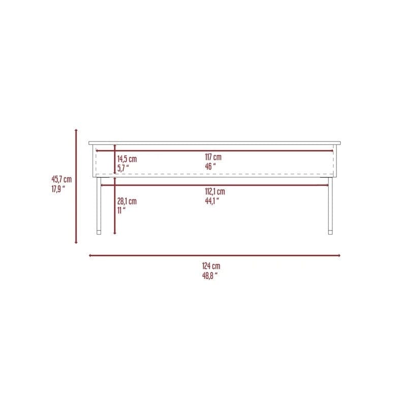 Make a statement with the 49" black manufactured wood rectangular lift top coffee table and infuse a dash of character and personality into your space. Made of manufactured wood, the black coloration throughout gives this piece an updated and refreshing look. This rectangular table is an classic yet updated way to accent your room. It has a fresh design that will definitely breathe some fresh air into your interior. This coffee table is the sturdy, reliable and stylish answer to your living room needs. 17.9" H x 48.8" W x 30.4" D