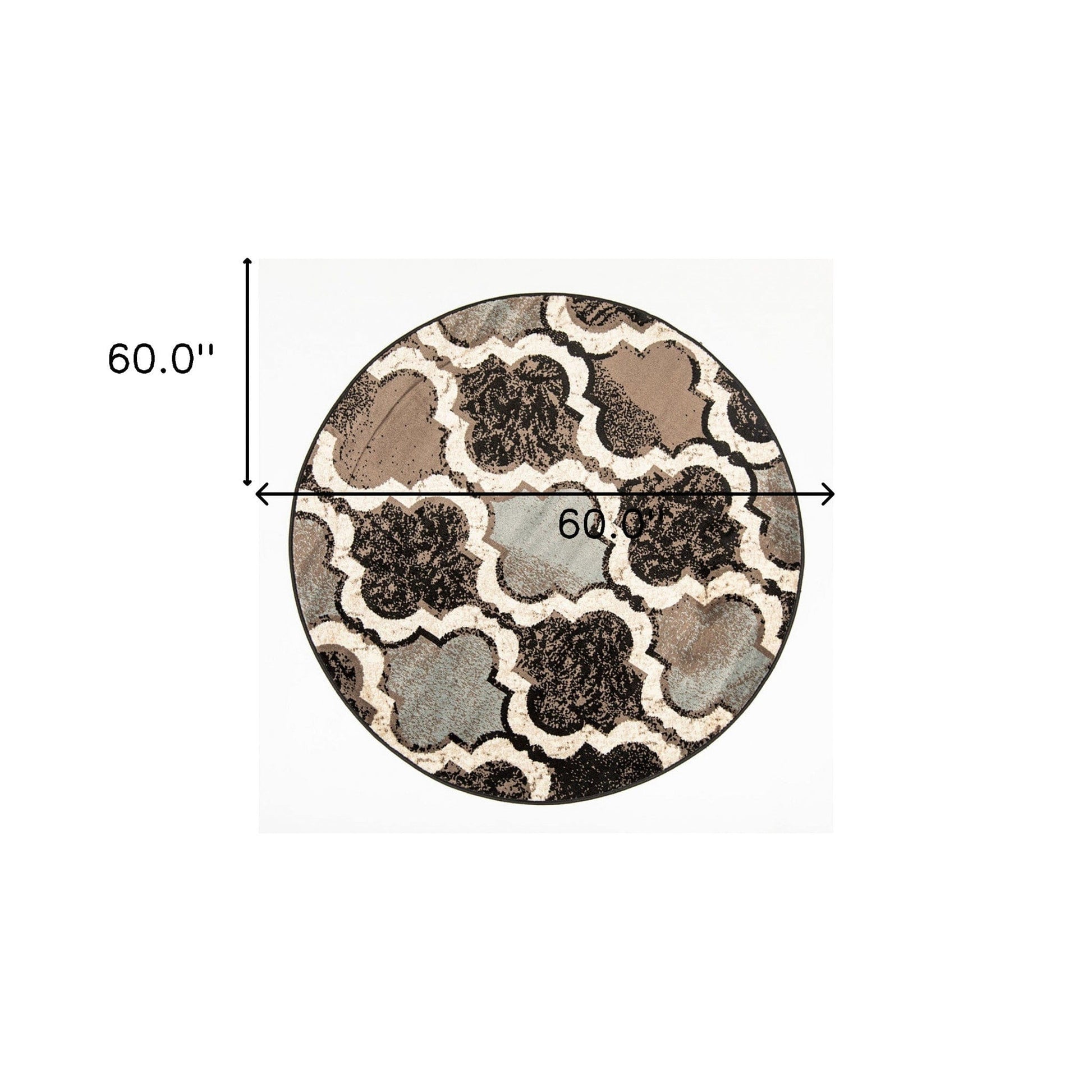 5' Round Chocolate Round Quatrefoil Power Loom Distressed Stain Resistant Area Rug
