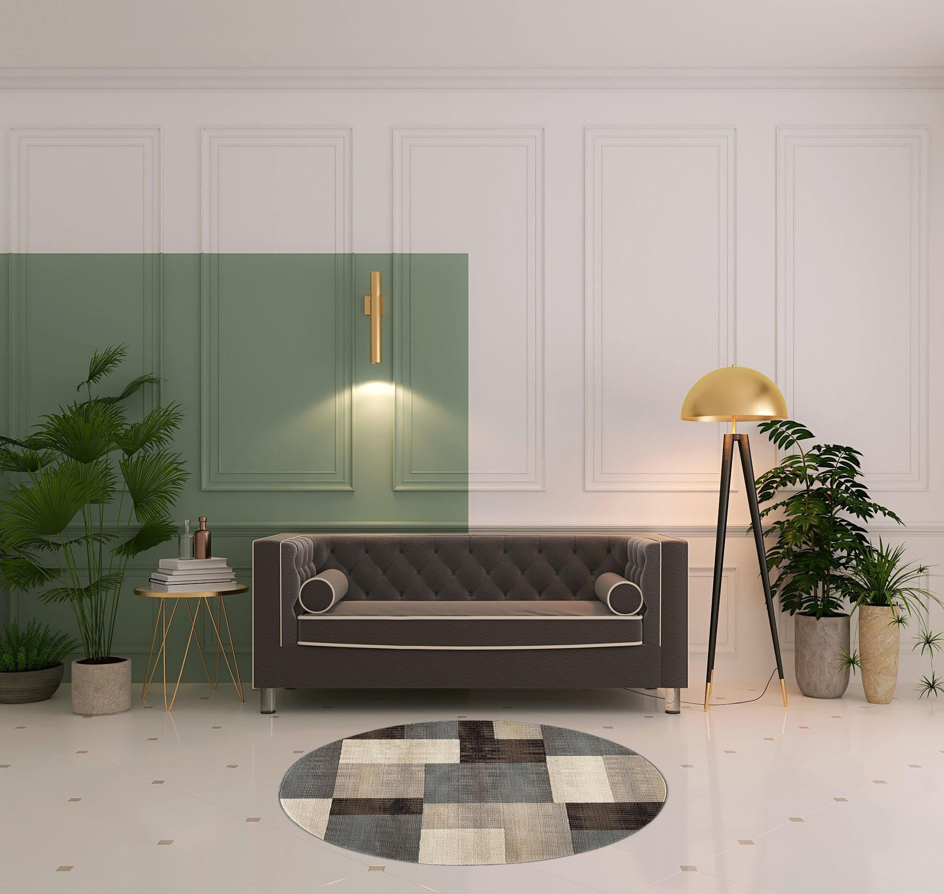 5' Round Grey-Brown Round Patchwork Power Loom Stain Resistant Area Rug