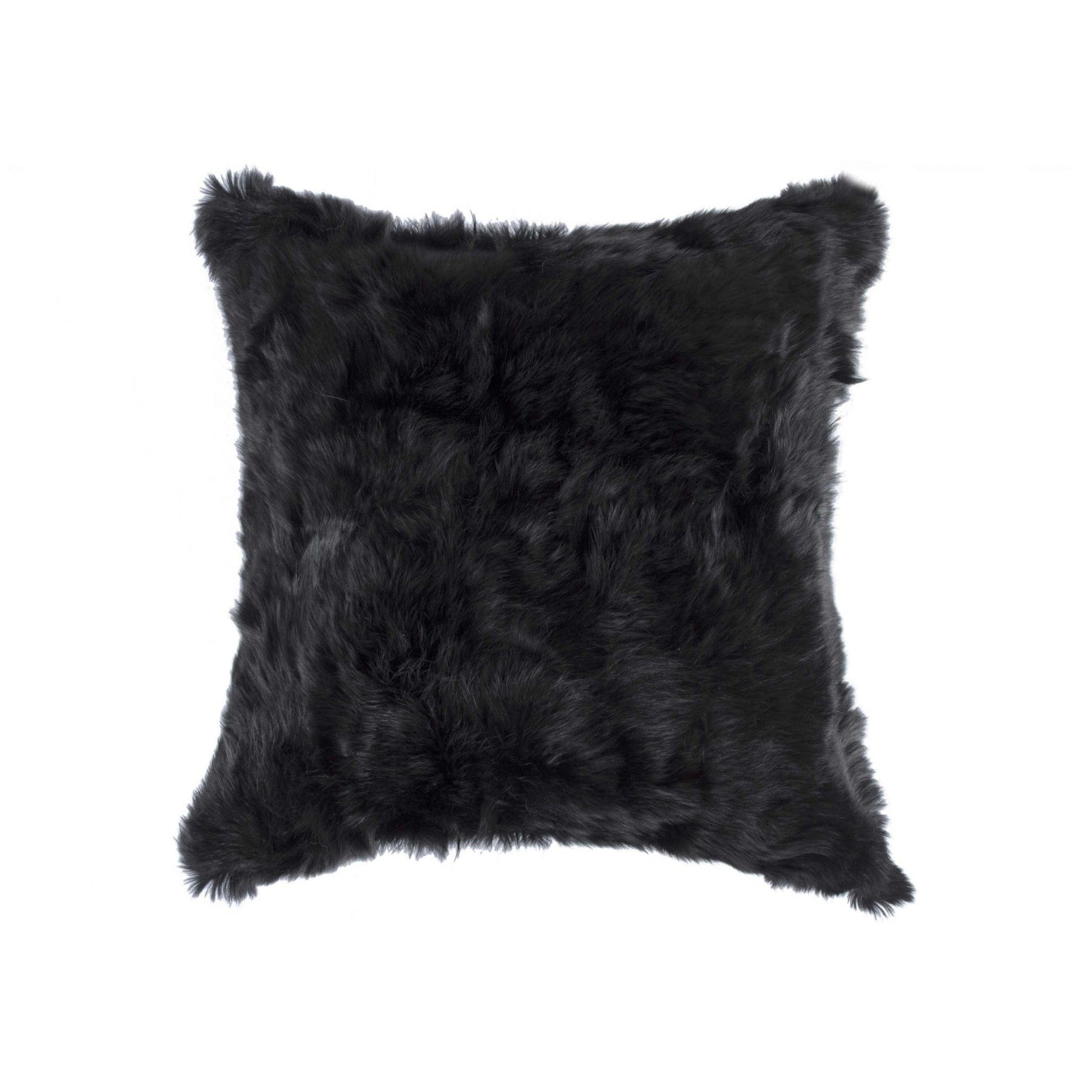 5" X 18" X 18" 100% Natural Rabbit Fur Black Pillow