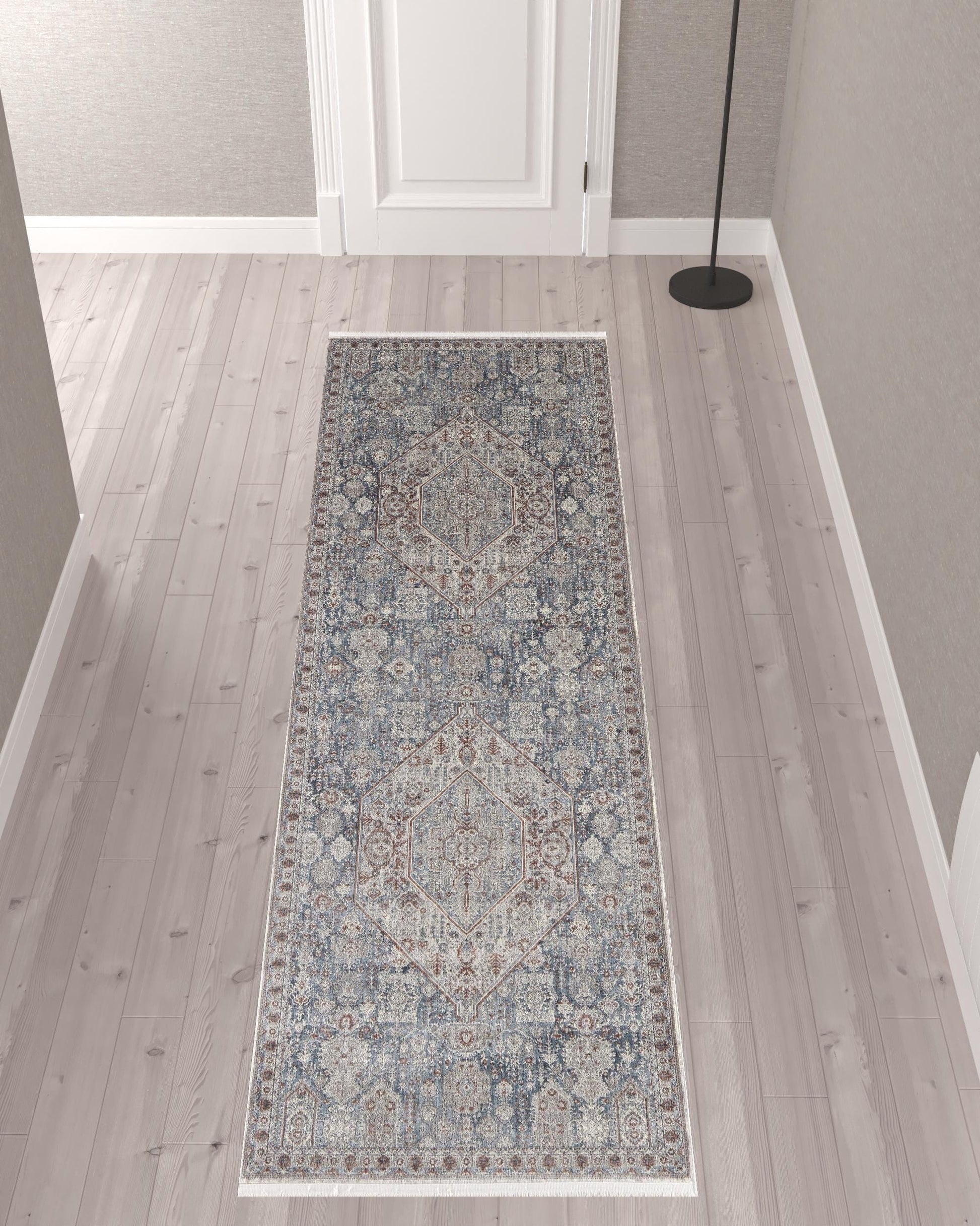 Add great coloration and comfortable texture to your space with this 5' x 7' blue and ivory floral power loom stain resistant area rug. This rectangle shaped rug features a floral design in blue and ivory to give it visual interest. A classic shape marries with good looking design for your space This superior Turkish rug represents the highest quality and is built to last. Ideal for spaces with kids and pets, this rug is stain resistant to help repel stains and spilled liquids. Area Rugs help to give warmth and sense of home to your space. 0.25" H x 60" W x 86" D