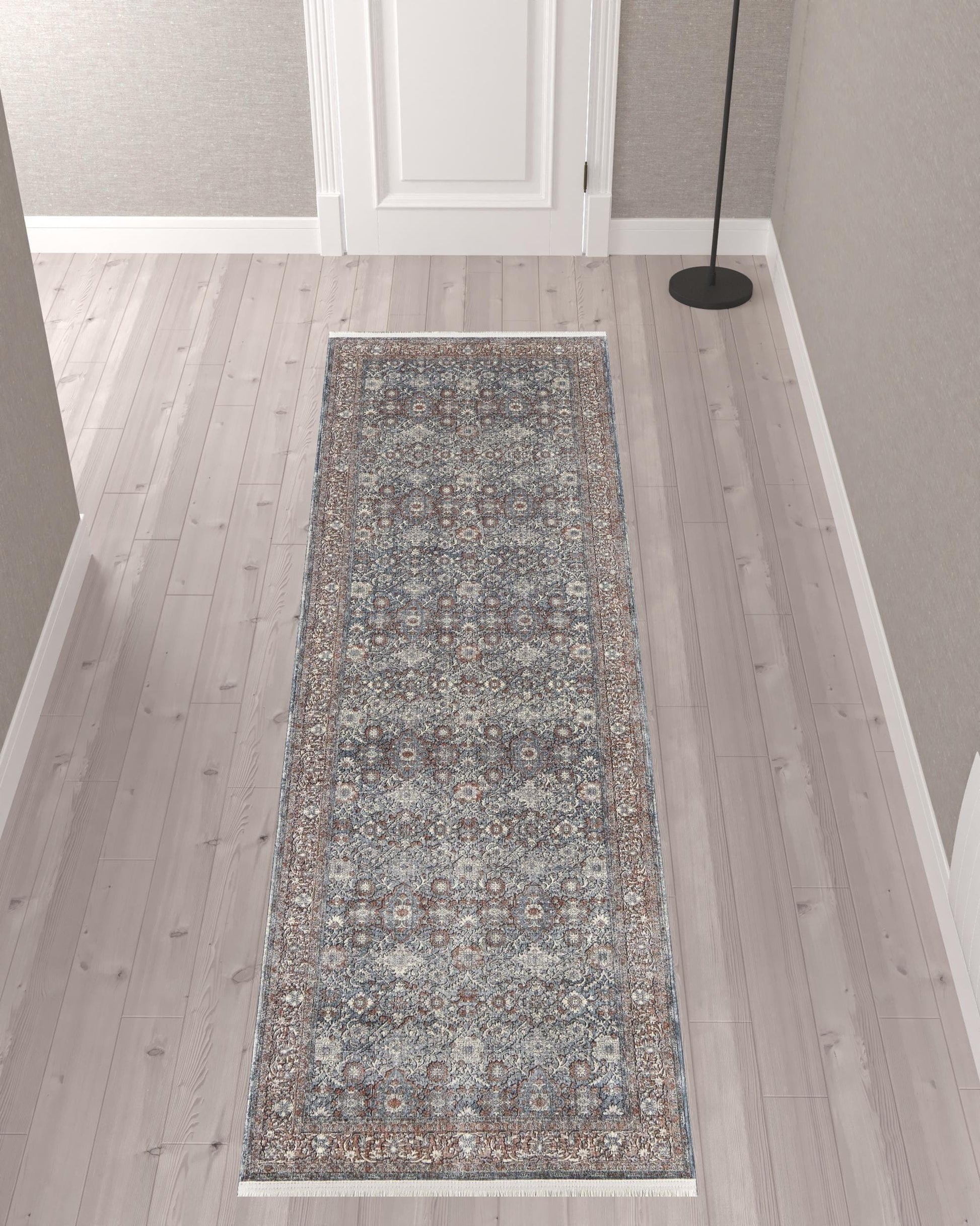Set an inviting tone in your space with this 5' x 7' blue and red floral power loom stain resistant area rug. This rectangle shaped rug features a floral design in blue and red to give it visual interest. A classic shape marries with good looking design for your space This superior Turkish rug represents the highest quality and is built to last. Ideal for spaces with kids and pets, this rug is stain resistant to help repel stains and spilled liquids. Area Rugs help to give warmth and sense of home to your space. 0.25" H x 60" W x 86" D