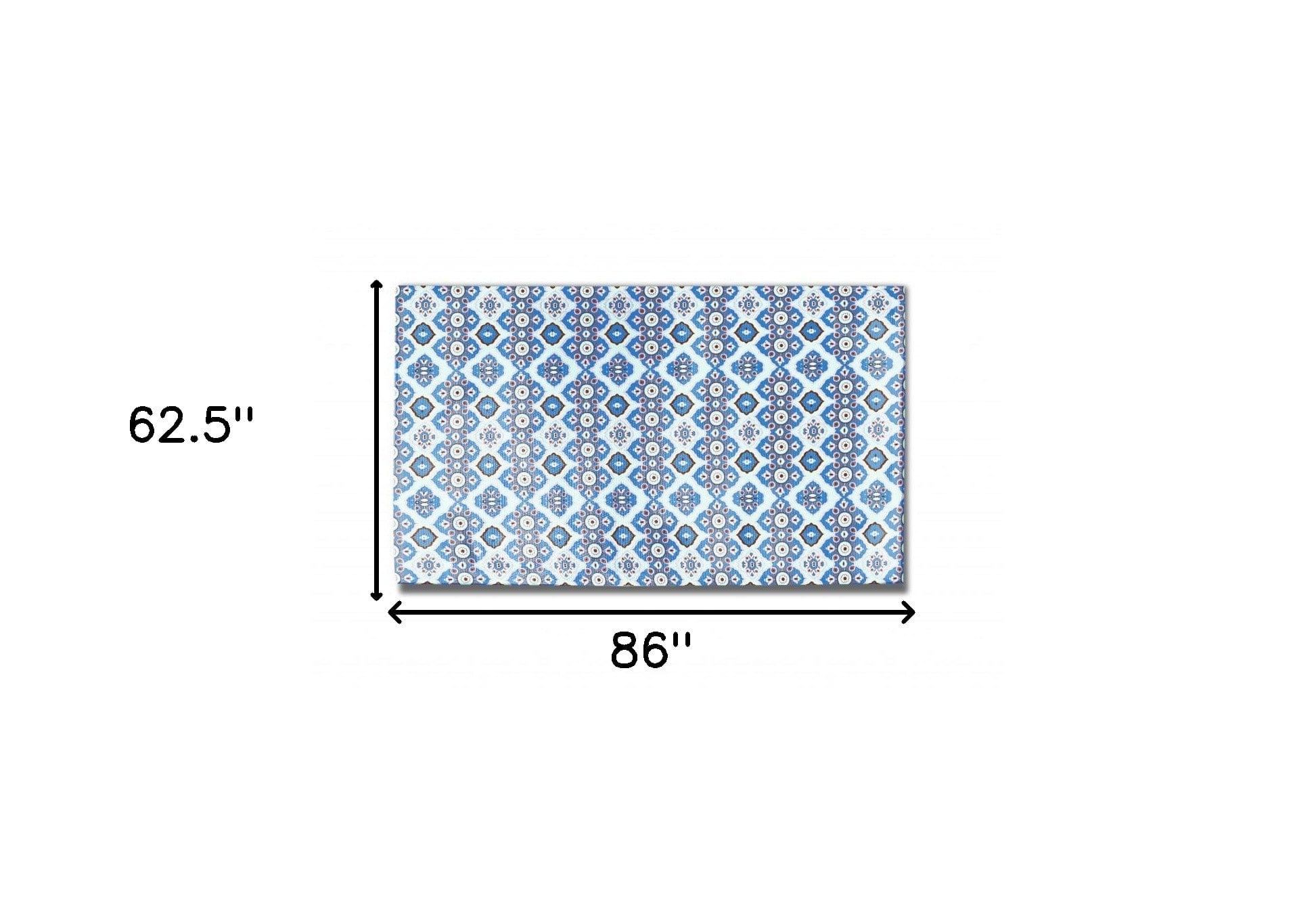Set an inviting tone in your space with this 5' x 7' blue and red oriental area rug. This rectangle shaped rug features a oriental design in blue and red to give it visual interest. A classic shape marries with good looking design for your space Place this area rug against a hardwood or tile floor and it will enliven your living space with style and sophistication. 1" H x 86" W x 62.5" D
