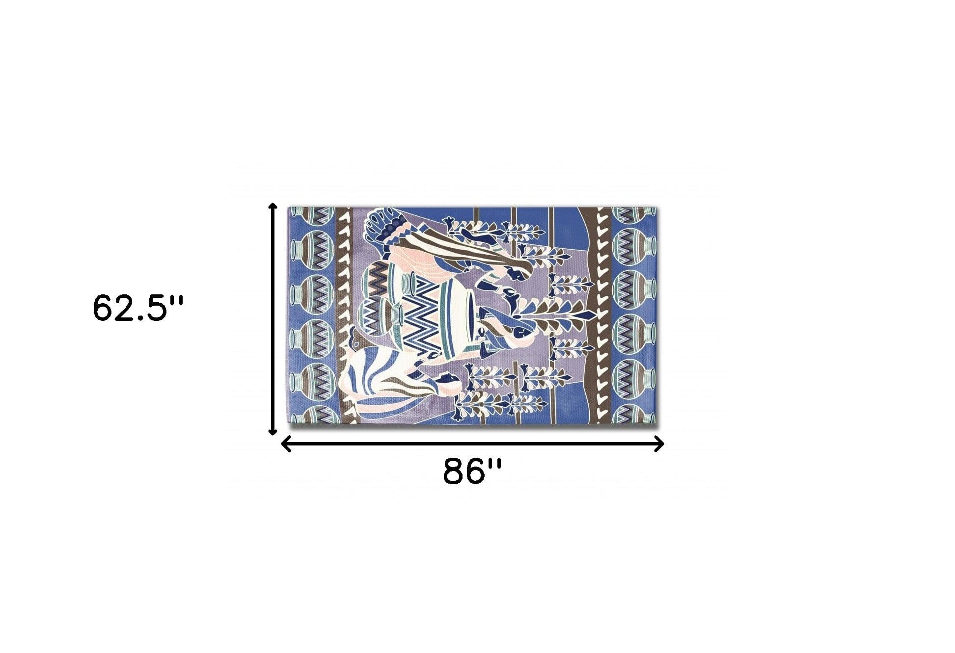 5' X 7' Brown And Muted Purple Abstract Area Rug
