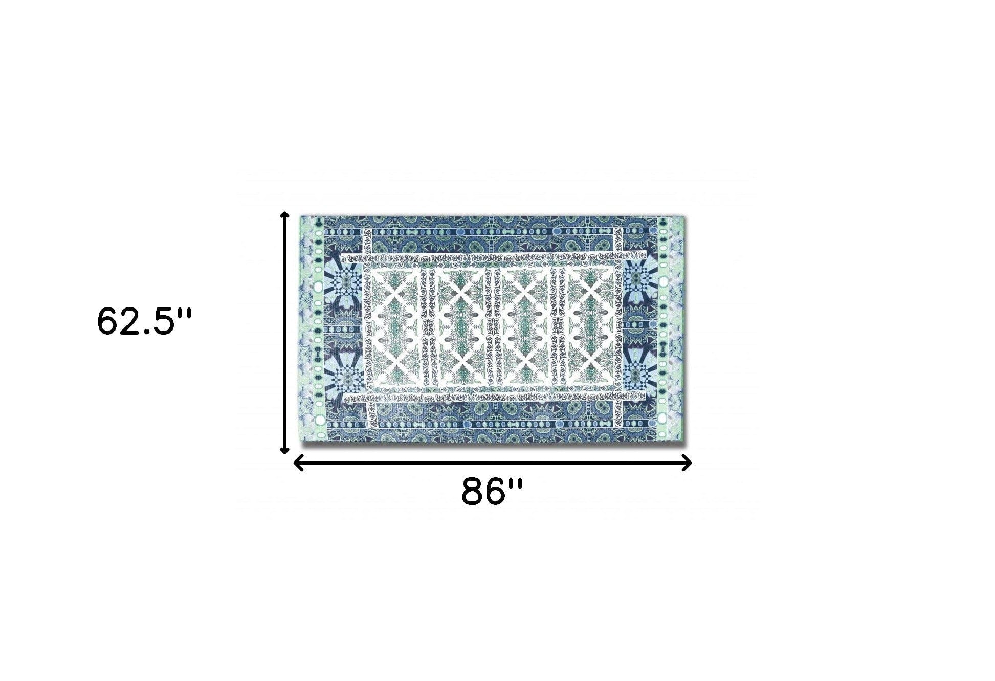 Add great coloration and comfortable texture to your space with this 5' x 7' green and blue oriental area rug. This rectangle shaped rug features a oriental design in green and blue to give it visual interest. A classic shape marries with good looking design for your space Area Rugs help to give warmth and sense of home to your space. 1" H x 86" W x 62.5" D