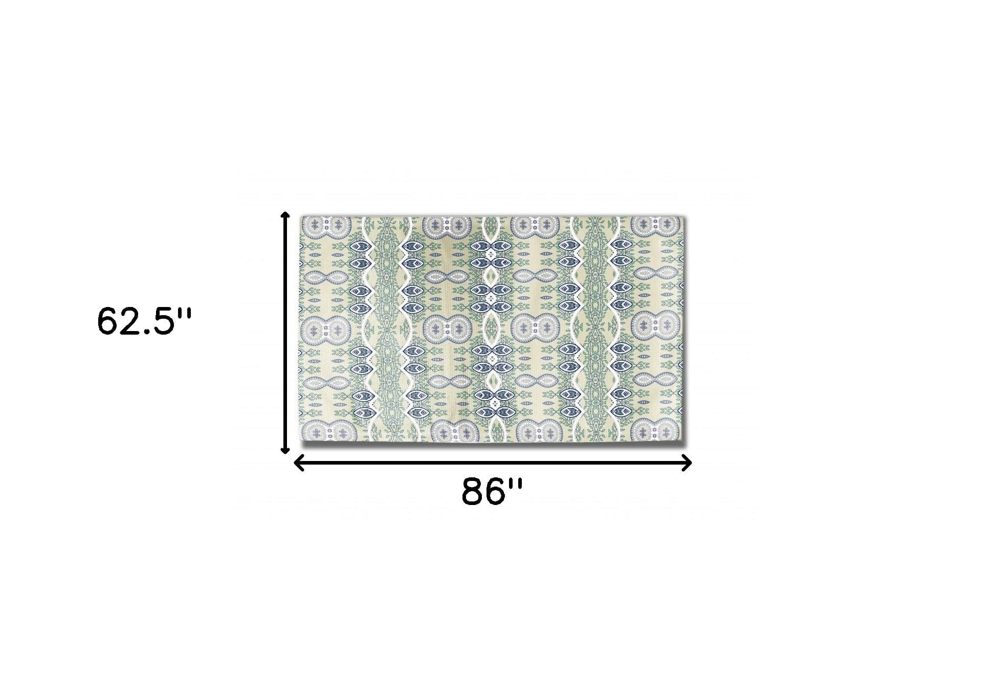 This 5' x 7' light green and beige oriental area rug, is a great way to add warmth to a room. This rectangle shaped rug features a oriental design in light green and beige to give it visual interest. A classic shape marries with good looking design for your space Place this area rug against a hardwood or tile floor and it will enliven your living space with style and sophistication. 1" H x 86" W x 62.5" D