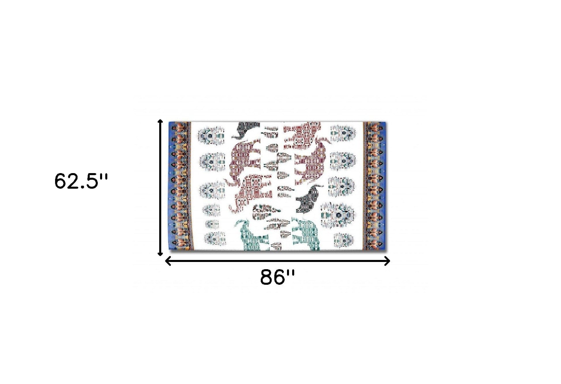 Add some artistry to your room with this 5' x 7' maroon and blue southwestern area rug. This rectangle shaped rug features a southwestern design in maroon and blue to give it visual interest. A classic shape marries with good looking design for your space Area Rugs help to give warmth and sense of home to your space. 1" H x 86" W x 62.5" D