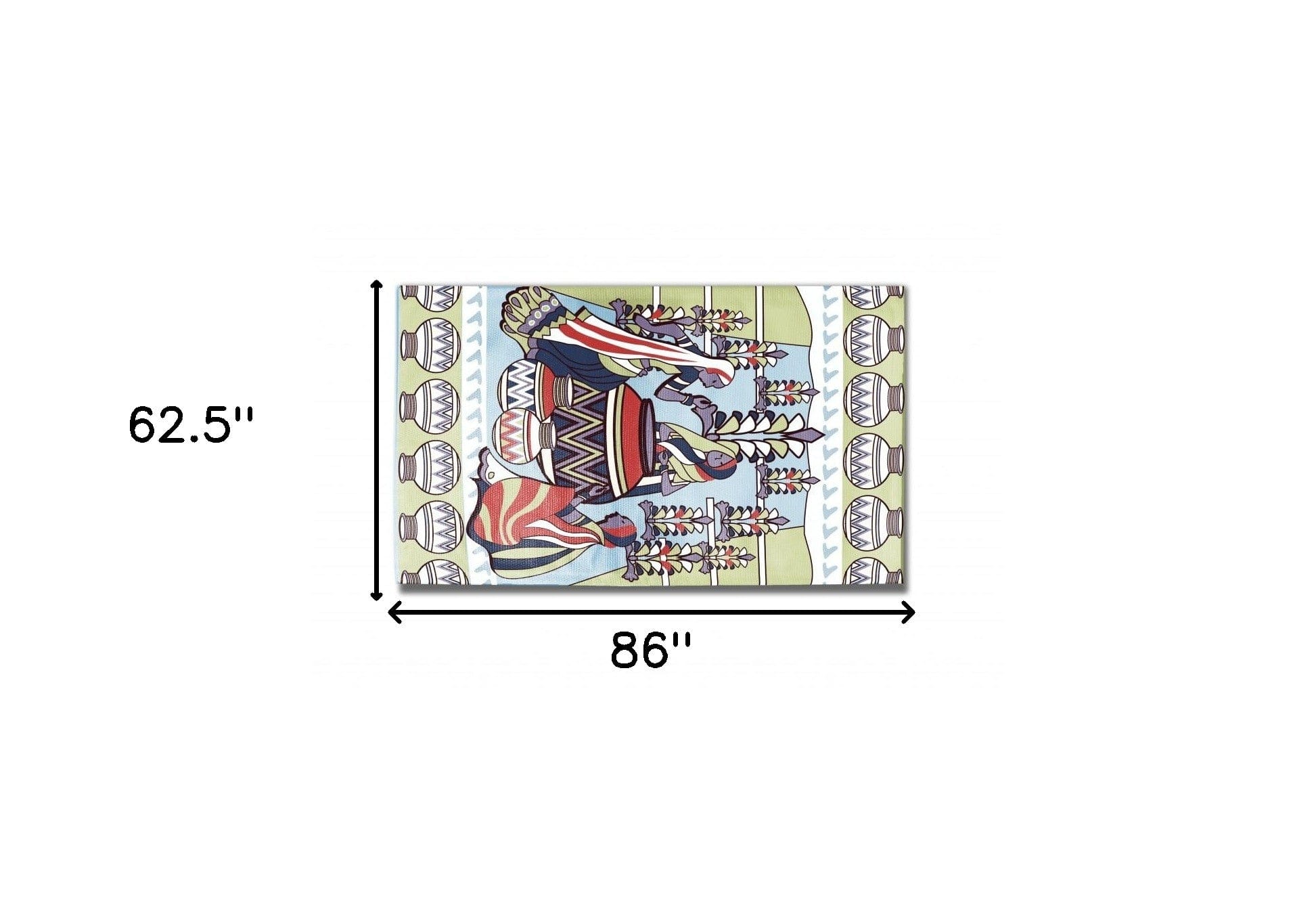 Set an inviting tone in your space with this 5' x 7' muted green and red abstract area rug. This rectangle shaped rug features a abstract design in muted green and red to give it visual interest. A classic shape marries with good looking design for your space Area Rugs help to give warmth and sense of home to your space. 1" H x 86" W x 62.5" D