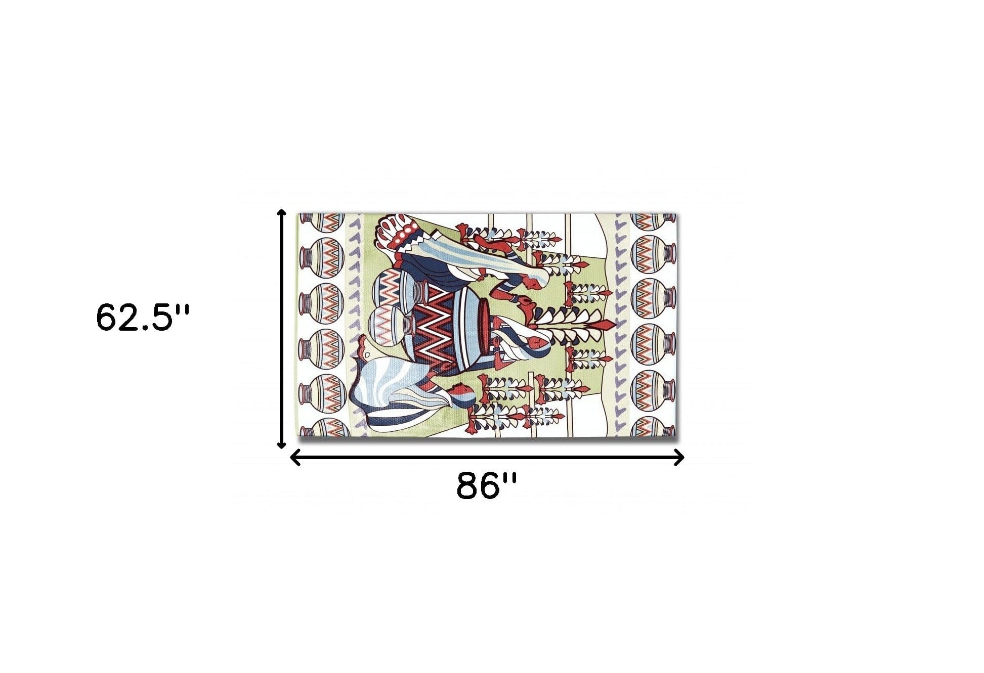 This 5' x 7' muted green and red abstract area rug, is a great way to add warmth to a room. This rectangle shaped rug features a abstract design in muted green and red to give it visual interest. A classic shape marries with good looking design for your space Place this area rug against a hardwood or tile floor and it will enliven your living space with style and sophistication. 1" H x 86" W x 62.5" D