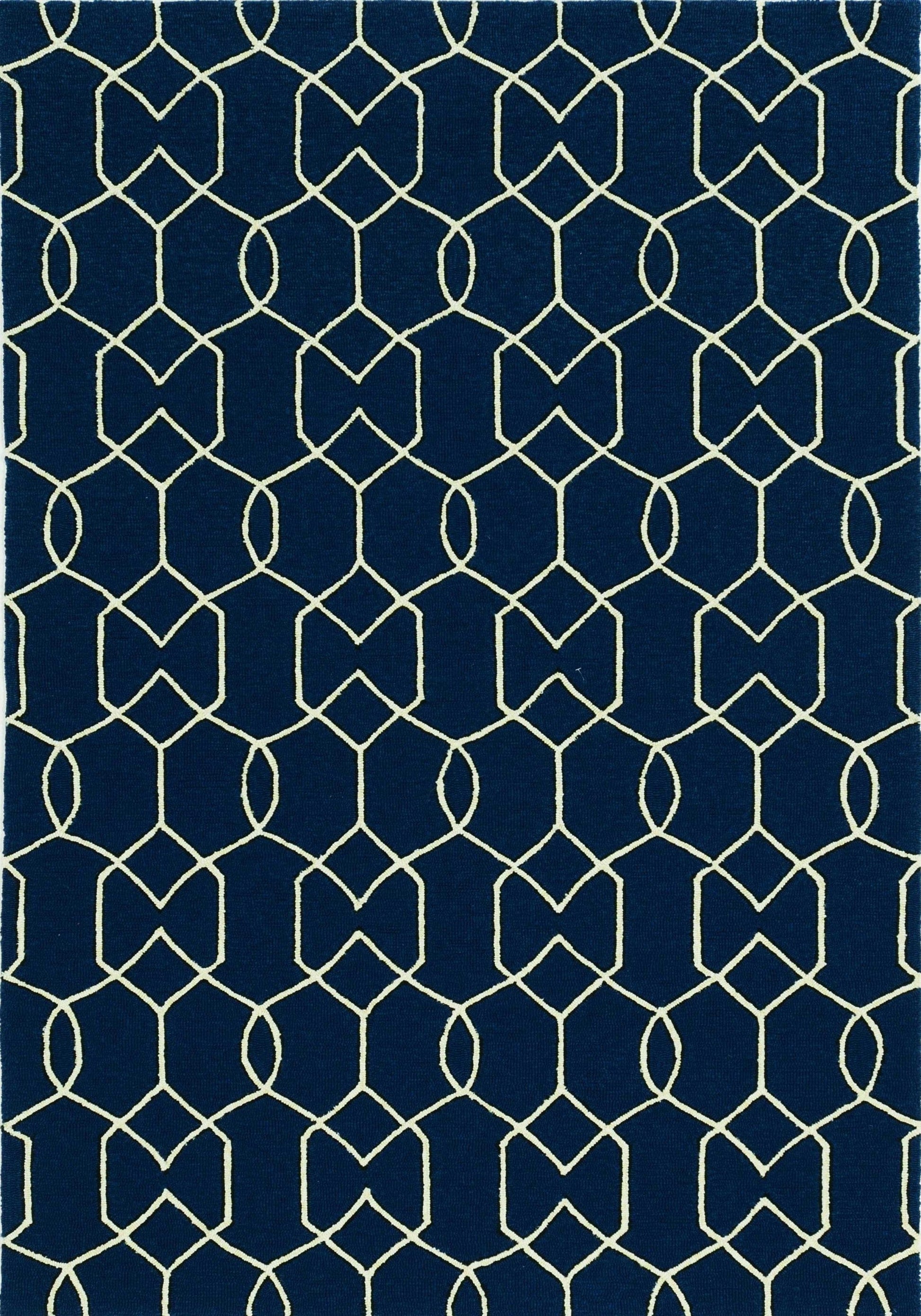 5' X 7' Navy Geometric Trellis Uv Treated Indoor Area Rug
