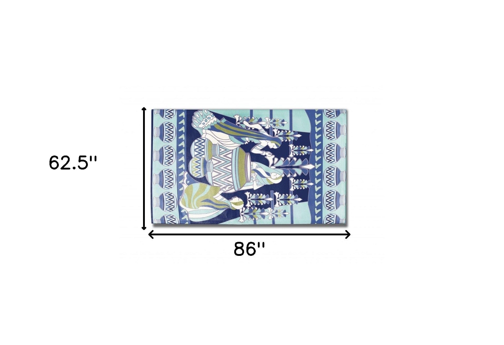 5' X 7' Navy Light Blue Green Abstract Area Rug