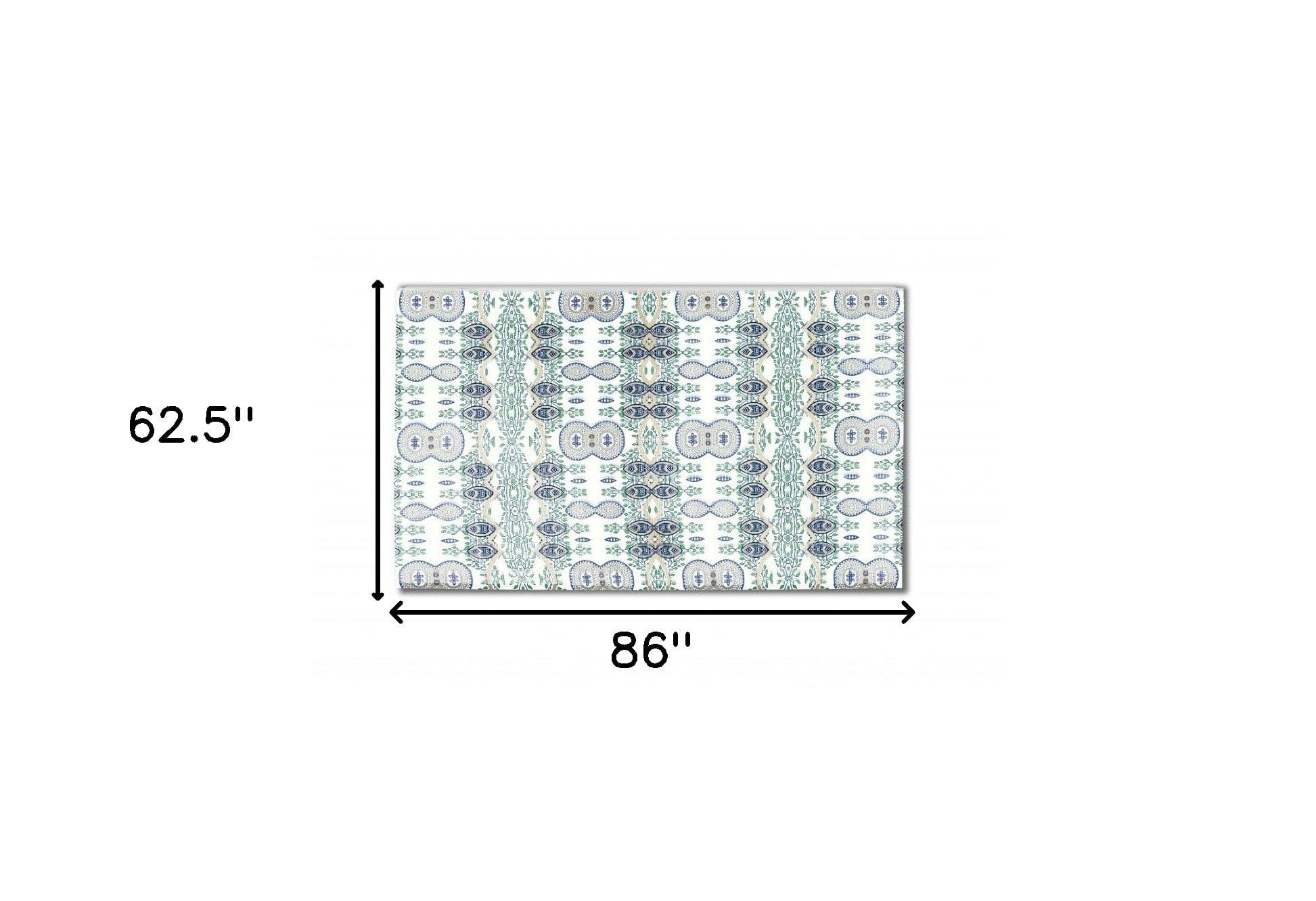 Add some artistry to your room with this 5' x 7' off white and beige oriental area rug. This rectangle shaped rug features a oriental design in off white and beige to give it visual interest. A classic shape marries with good looking design for your space Place this area rug against a hardwood or tile floor and it will enliven your living space with style and sophistication. 1" H x 86" W x 62.5" D