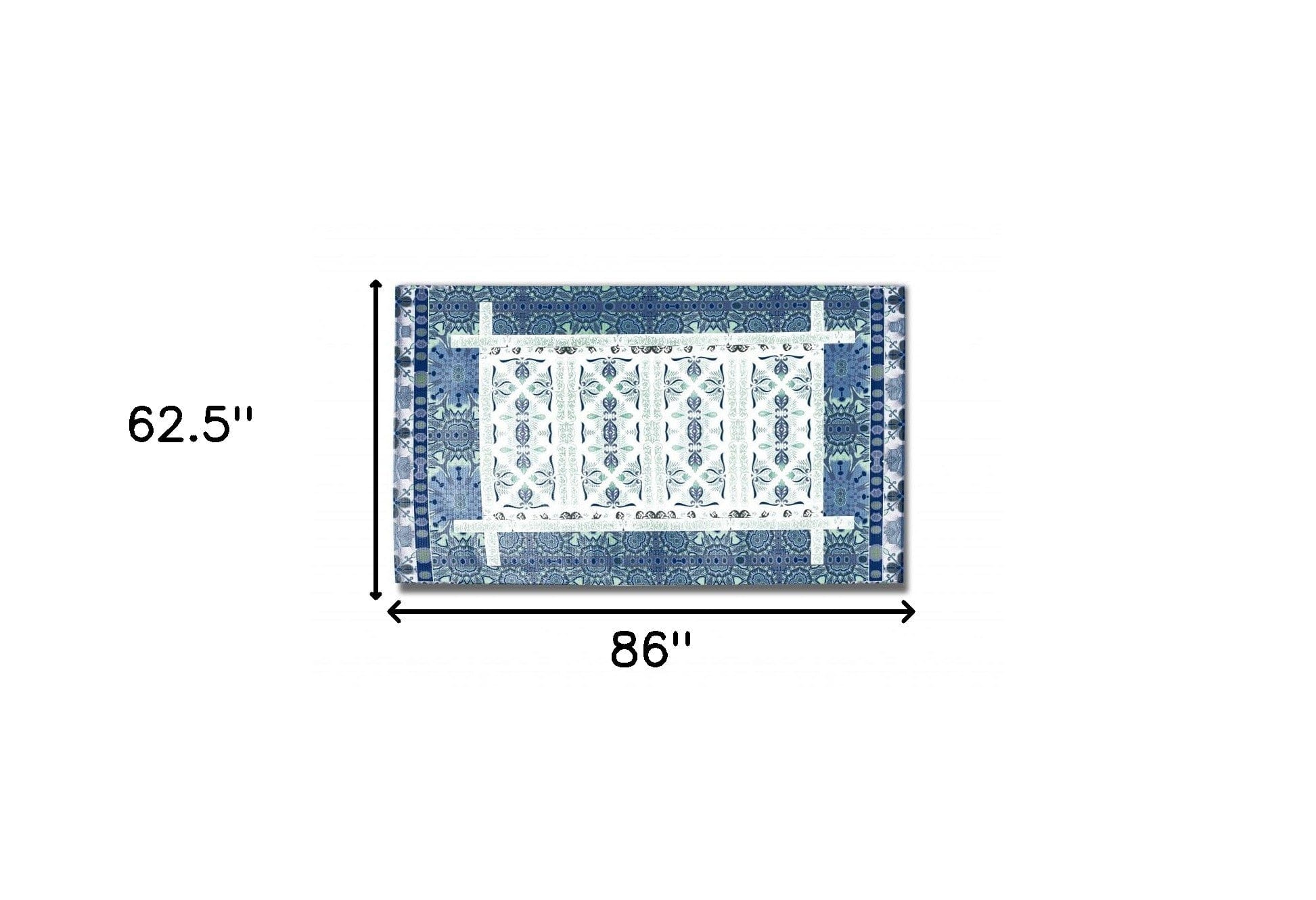 This 5' x 7' white and blue oriental area rug, is a great way to add warmth to a room. This rectangle shaped rug features a oriental design in white and blue to give it visual interest. A classic shape marries with good looking design for your space Area Rugs help to give warmth and sense of home to your space. 1" H x 86" W x 62.5" D