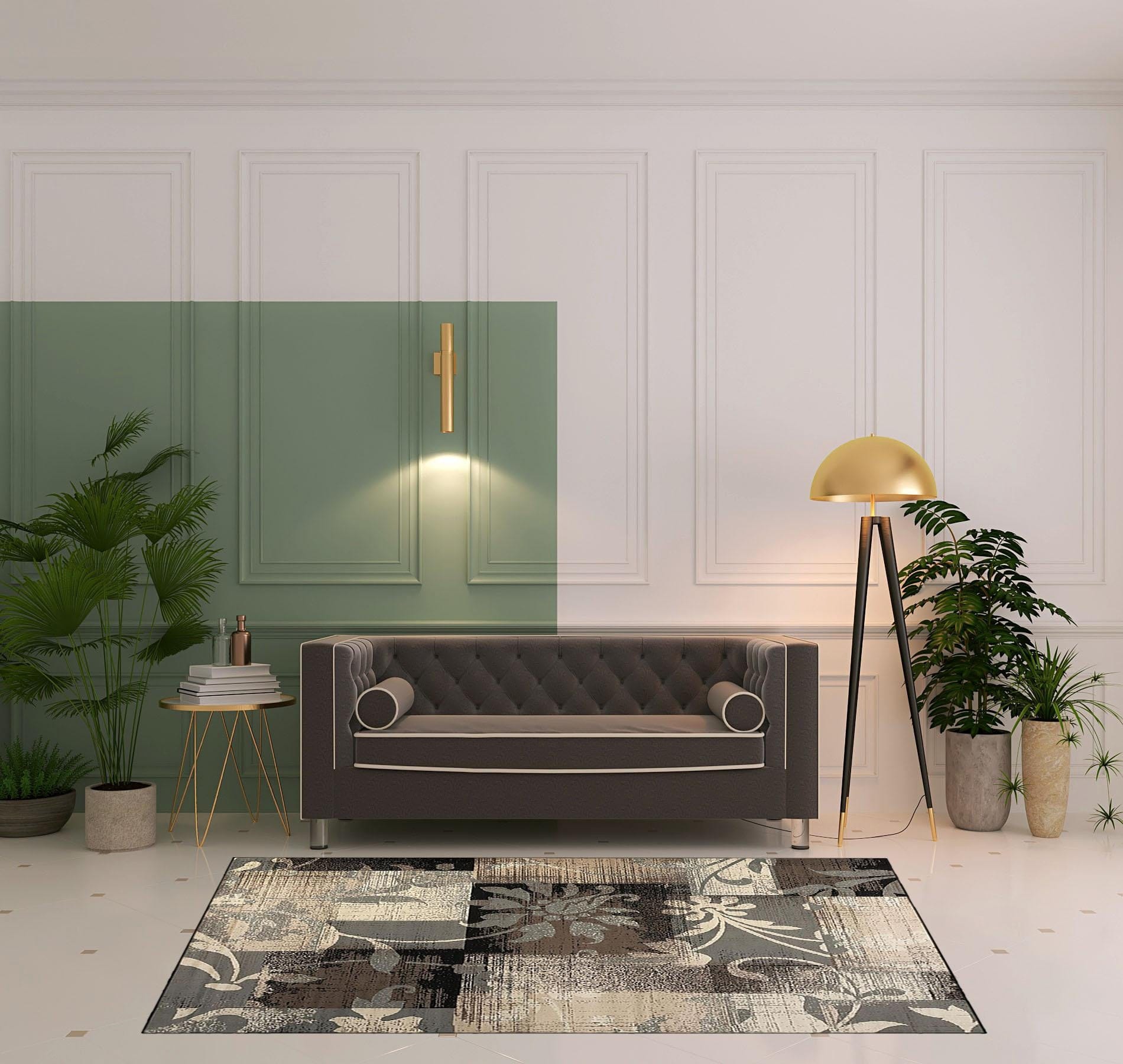 This 5' x 8' beige and gray floral power loom distressed stain resistant area rug, is a great way to add warmth to a room. This rectangle shaped rug features a floral design in beige and gray to give it visual interest. A classic shape marries with good looking design for your space Made in Turkey, this rug offers high quality combined with good looking designer sensibilities. Ideal for spaces with kids and pets, this rug is stain resistant to help repel stains and spilled liquids. Area Rugs help to give warmth and sense of home to your space. 0.31" H x 60" W x 96" D