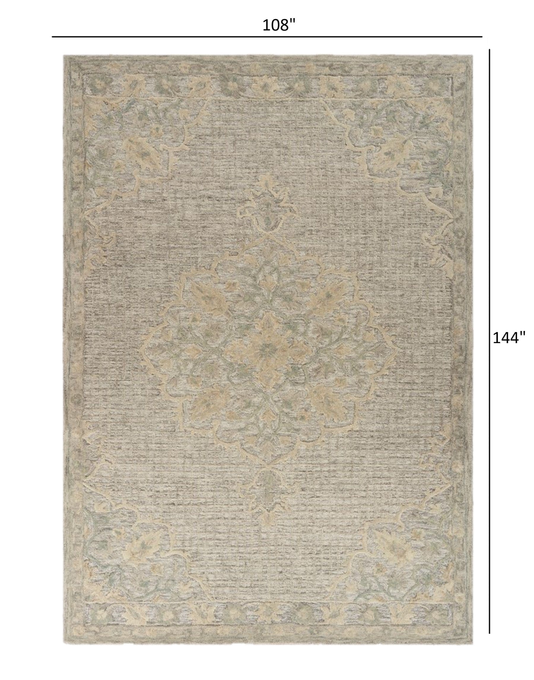 The pleasant worn-out appeal of this Beige Distressed Floral Area Rug will be a statement piece to adorn your traditional home with a vintage vibe. Featuring a faded center medallion with ornate borders in the variegated shades of rustic brown and Prussian blue over a distressed beige base to achieve a crossover between trend and tradition. Expertly Handwoven of wool and cotton blend which are environmentally friendly material that resists stains and are highly durable to keep its shape and shine for years to come. This rug is made to feel soft under the feet, with a medium pile that feels luxurious to the touch and contributes to a plush surface texture that both kids and pets enjoy.Transitioning between the present and past with patterns and palette, this area rug will be a worthy piece of accent to complement a range of interior themes and decors. 60” x 93” x 0.5”