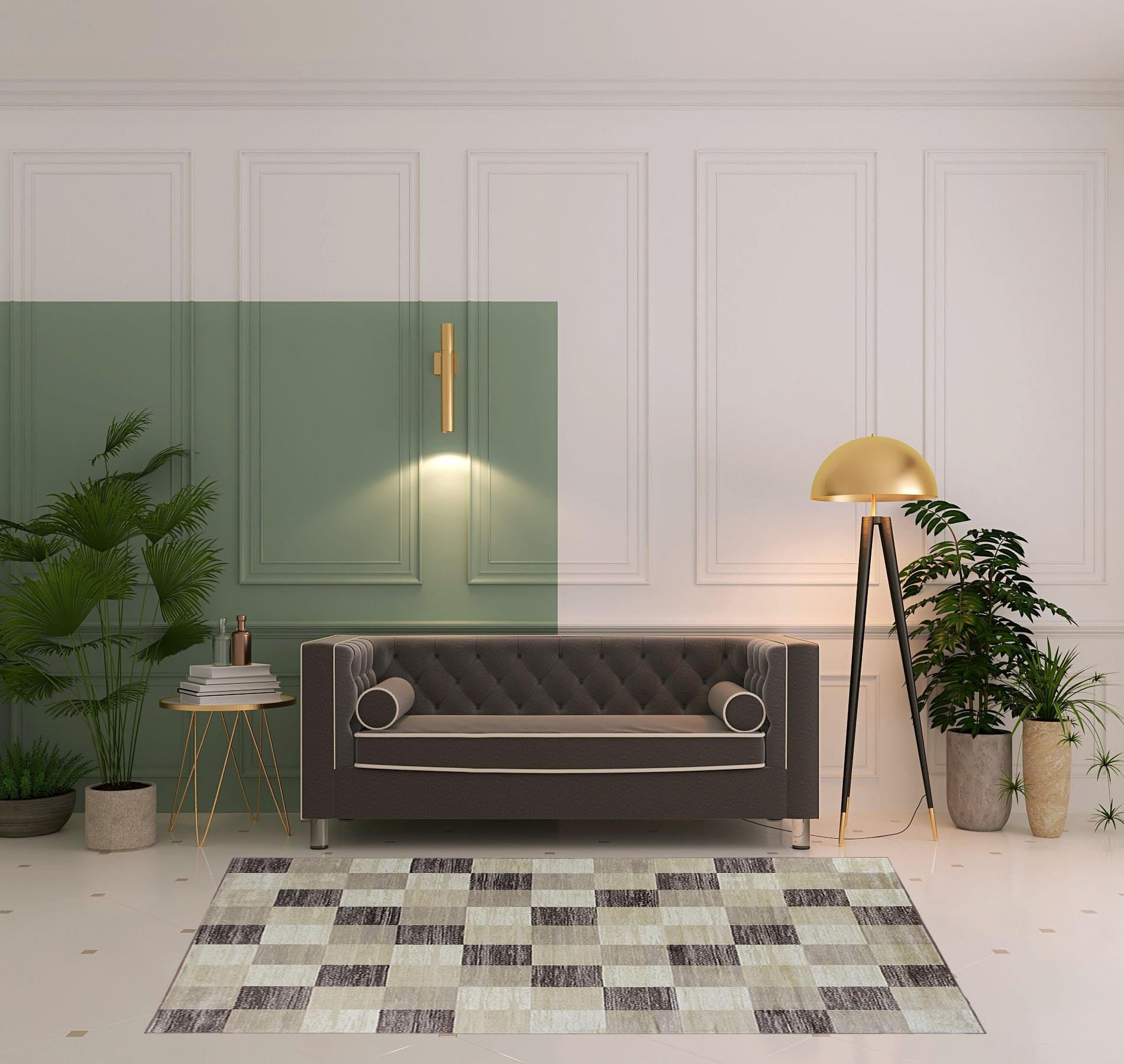 Set an inviting tone in your space with this 5' x 8' beige geometric power loom stain resistant area rug. This rectangle shaped rug features a geometric design in beige to give it visual interest. A classic shape marries with good looking design for your space The coloring of this rug adds a delightfully neutral tone to your home and will easily match with most any decor. Made in Turkey, this rug offers high quality combined with good looking designer sensibilities. Ideal for spaces with kids and pets, this rug is stain resistant to help repel stains and spilled liquids. Place this area rug against a hardwood or tile floor and it will enliven your living space with style and sophistication. 0.39" H x 60" W x 96" D