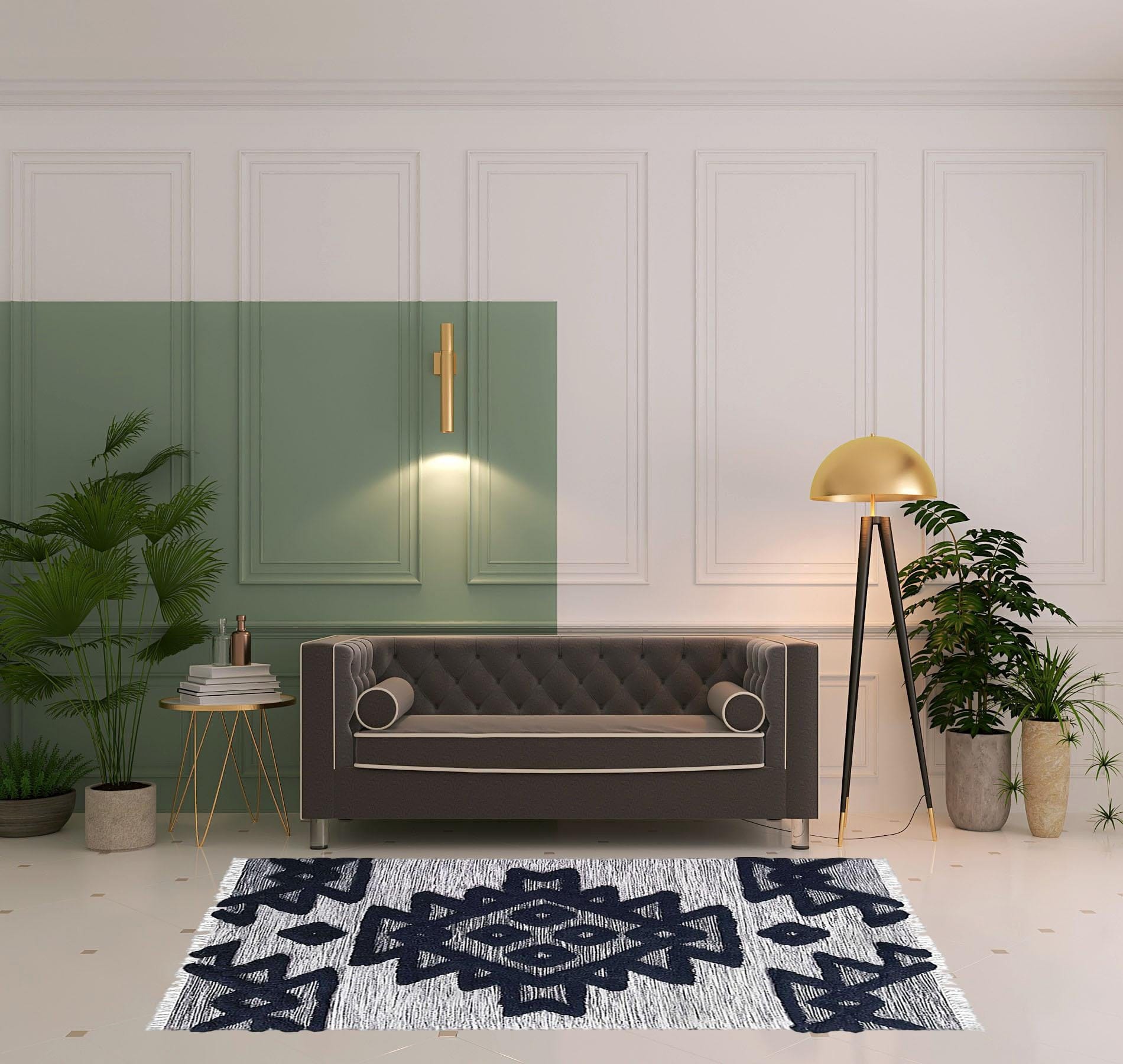 Set an inviting tone in your space with this 5' x 8' black and ivory wool geometric flatweave handmade stain resistant area rug with fringe. This rectangle shaped rug features a geometric design in black and ivory to give it visual interest. A classic shape marries with good looking design for your space Made in Turkey, this rug offers high quality combined with good looking designer sensibilities. Ideal for spaces with kids and pets, this rug is stain resistant to help repel stains and spilled liquids. Tassel ends bring a timeless and fashionable look to your interior. Place this area rug against a hardwood or tile floor and it will enliven your living space with style and sophistication. 1.38" H x 60" W x 96" D