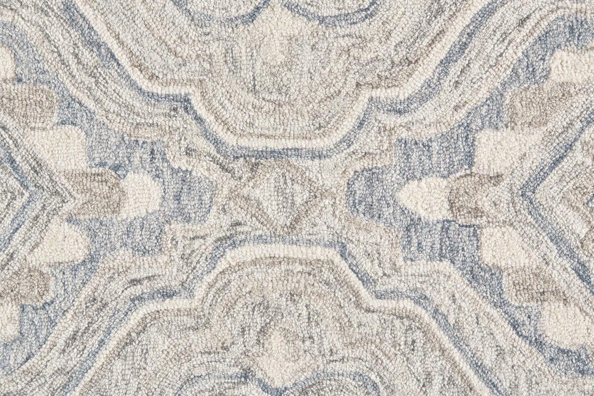 Set an inviting tone in your space with this 5' x 8' blue orange and ivory wool geometric tufted handmade stain resistant area rug. This rectangle shaped rug features a geometric design in blue orange and ivory to give it visual interest. A classic shape marries with good looking design for your space Ideal for spaces with kids and pets, this rug is stain resistant to help repel stains and spilled liquids. Place this area rug against a hardwood or tile floor and it will enliven your living space with style and sophistication. 0.5" H x 60" W x 96" D