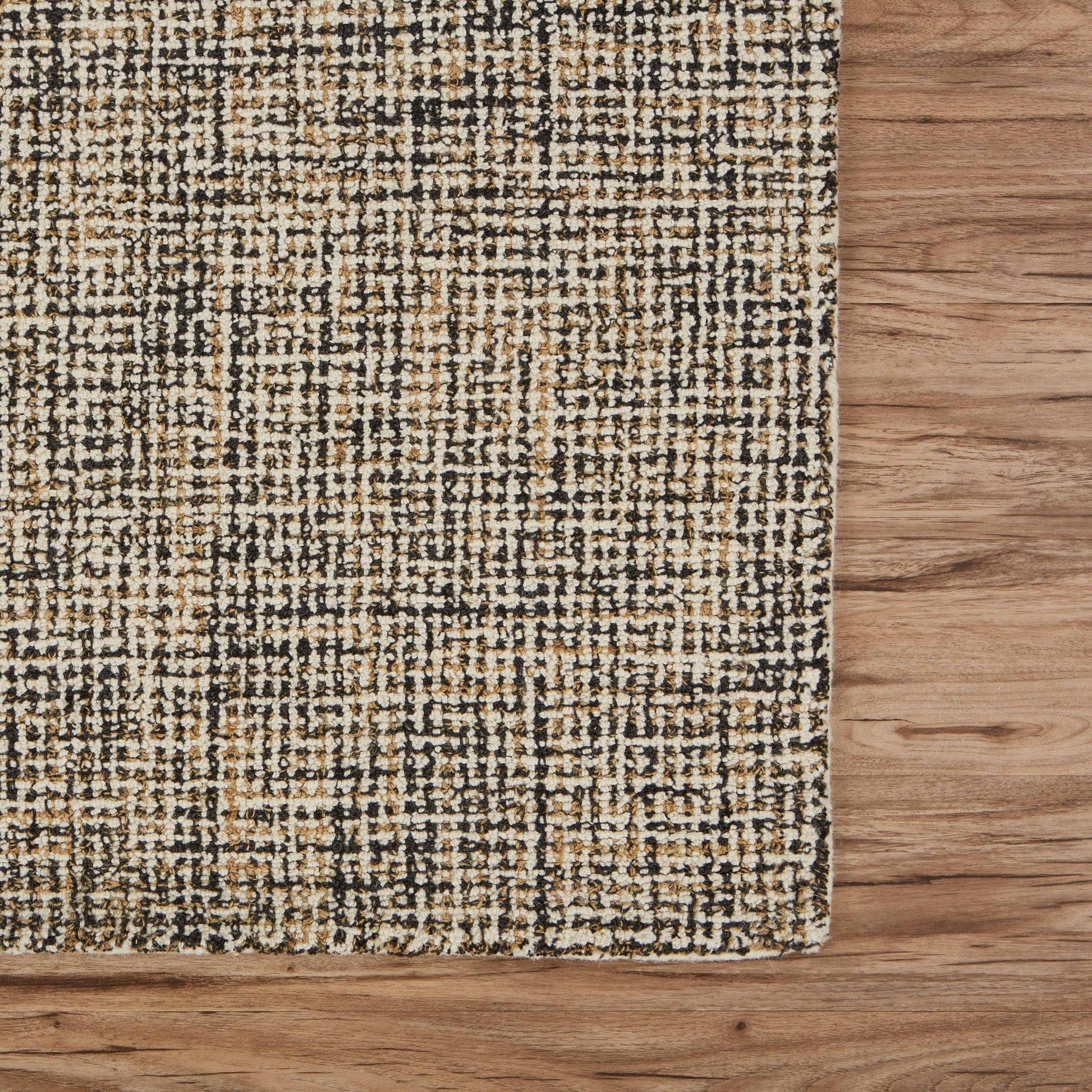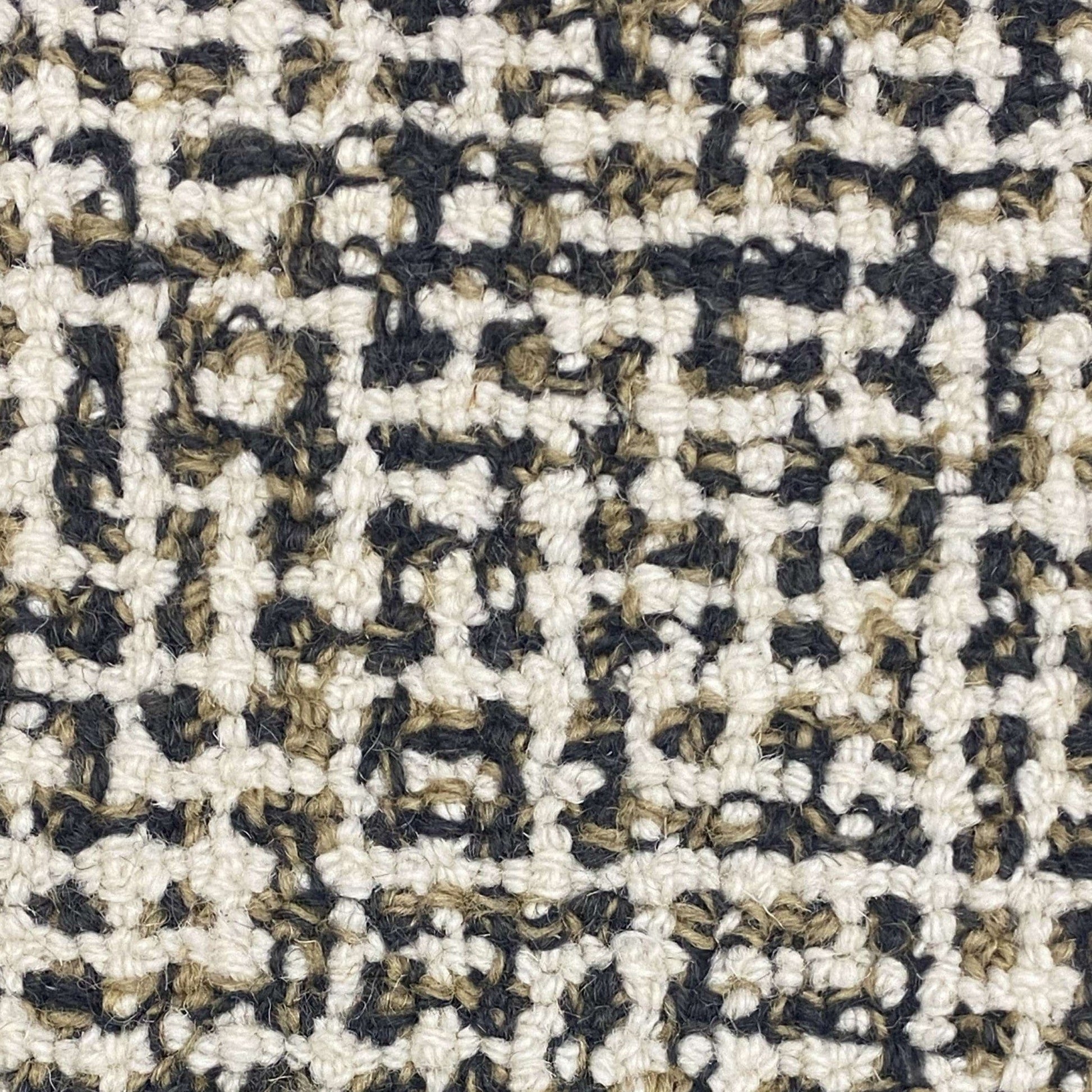 Upholding a classic combination with modern sophistication, this Charcoal Interwoven Maze Area Rug exudes an understated elegance that will tie together the aesthetics of any modern or traditional home. The intricacy of the weaving details in a fusion of charcoal black, gold, and white adds texture to the piece with an abrash effect. This rug is made of 100% wool for added softness and durability, allowing it to last a long time and provide a cushiony underfoot. The medium pile adds to the surface interest and provides a luxurious feel under the feet, making it a practical solution for busy households with pets and children. Transform your modern space with this neutral-toned area rug that will add a layer of warmth and coziness to the floor. 60” x 93” x 0.5”