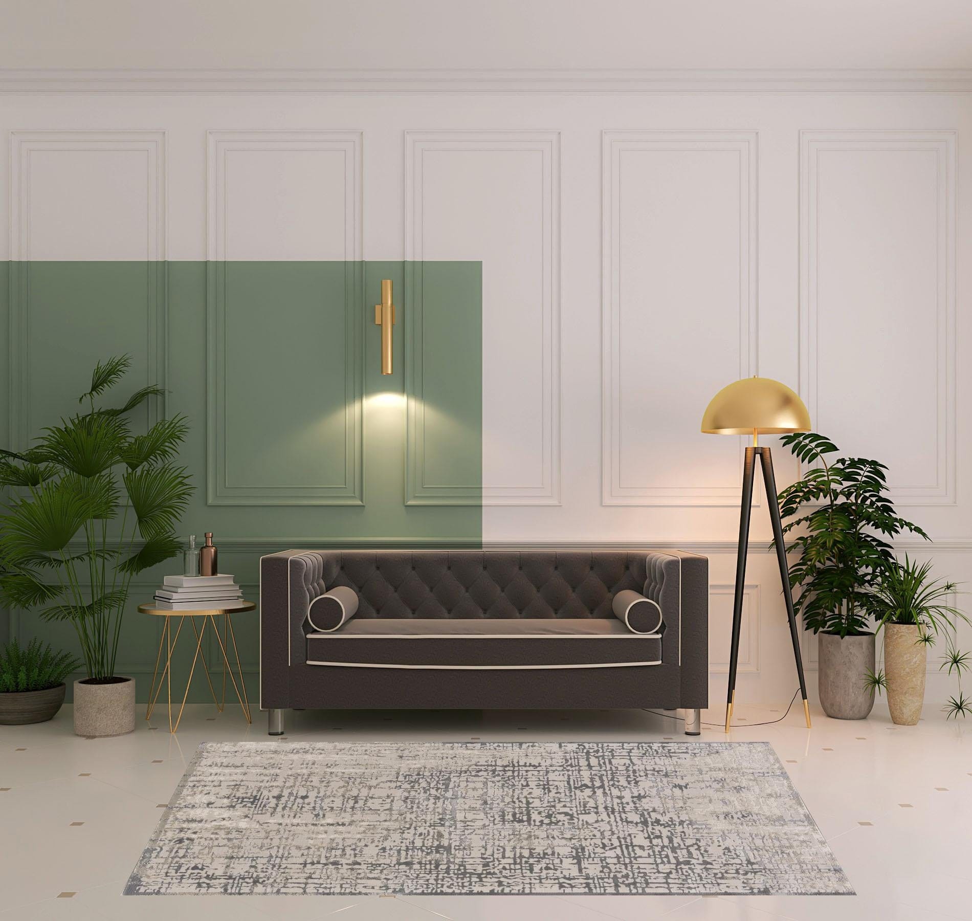 Set an inviting tone in your space with this 5' x 8' gray and ivory abstract stain resistant area rug. This rectangle shaped rug features a abstract design in gray and ivory to give it visual interest. A classic shape marries with good looking design for your space Made in Turkey, this rug offers high quality combined with good looking designer sensibilities. Ideal for spaces with kids and pets, this rug is stain resistant to help repel stains and spilled liquids. Place this area rug against a hardwood or tile floor and it will enliven your living space with style and sophistication. 0.39" H x 60" W x 96" D