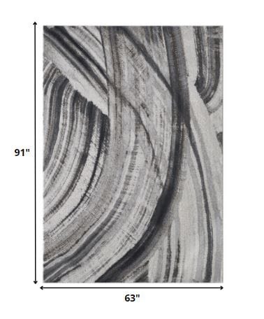 5’ x 8’ Gray Ivory Abstract Strokes Modern Area Rug