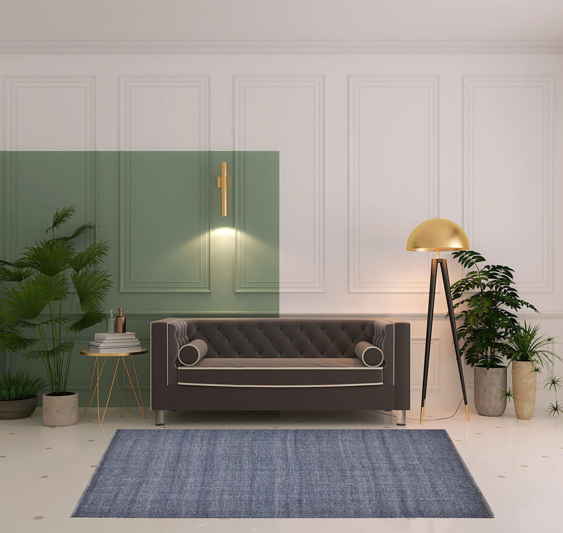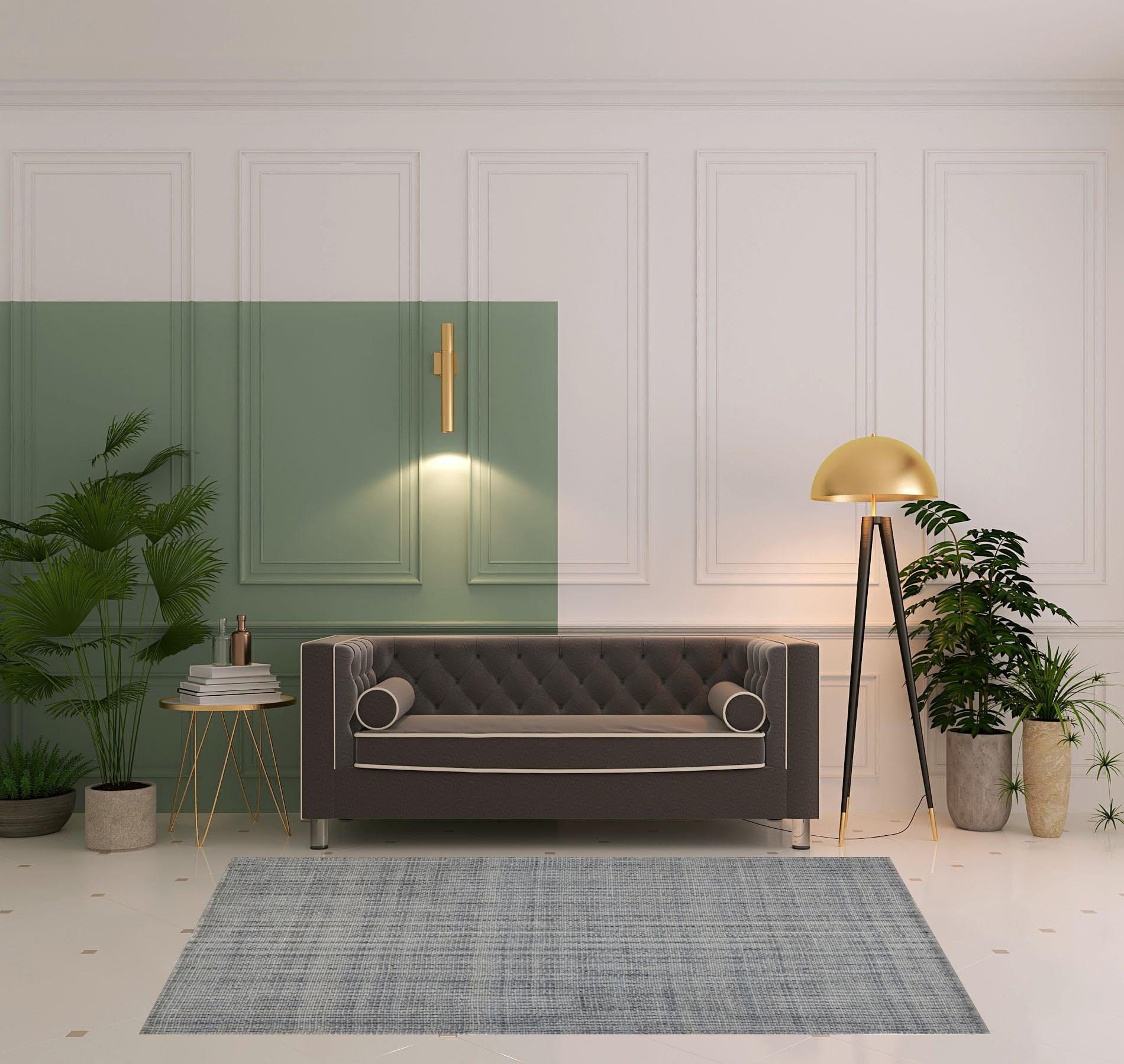 Add some artistry to your room with this 5' x 8' gray ivory and blue hand woven area rug. This rectangle shaped rug flaunts a gray ivory and blue color that will be a great way to accent your space. Solid colors are versatile and will blend with any existing decor style. Crafted by skilled artisans, this hand woven rug is genuine and unique. No two will be exactly alike. Area Rugs help to give warmth and sense of home to your space. 0.25" H x 60" W x 96" D