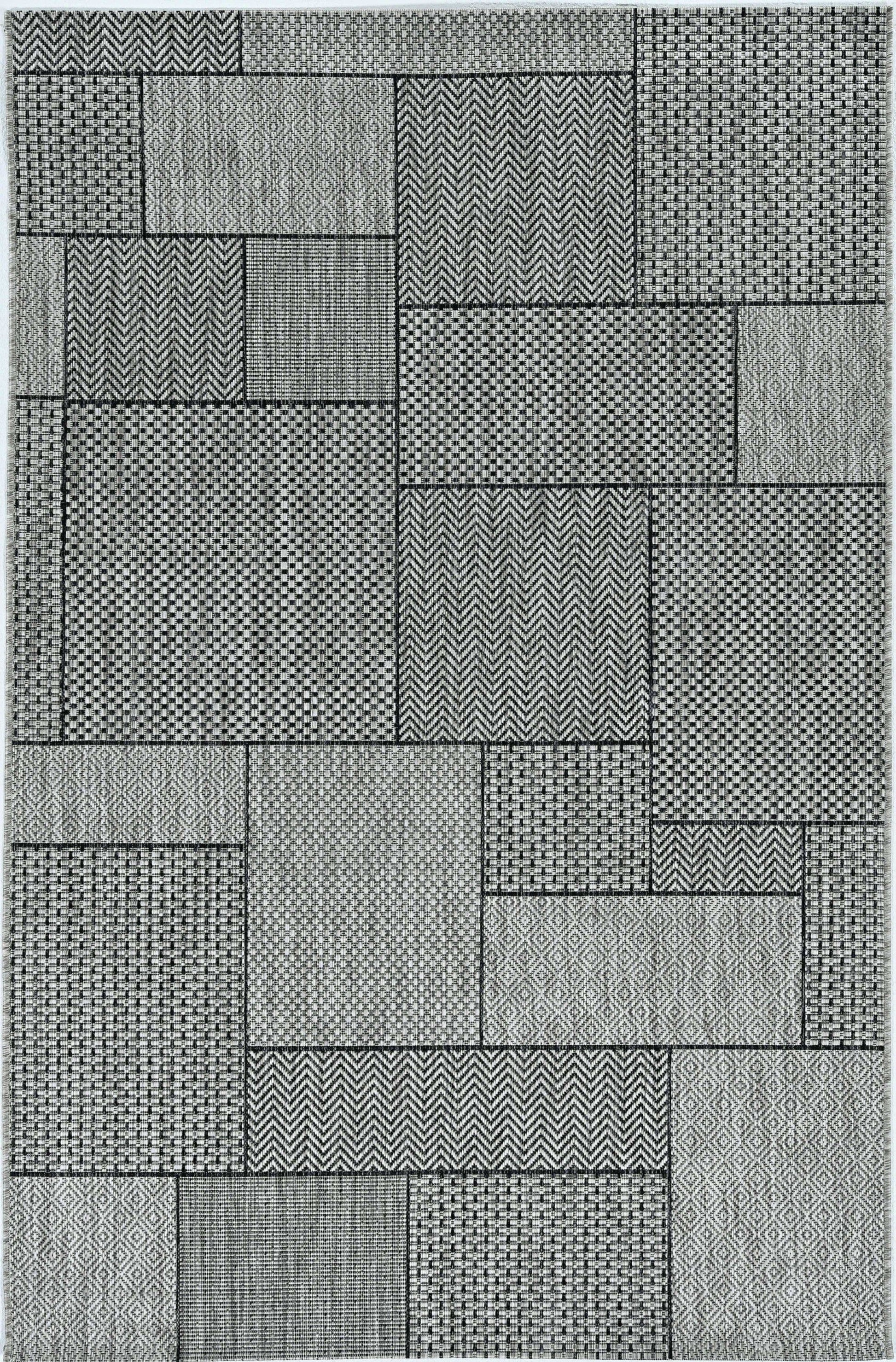 Liven up your home inside or out! Our collection of textured indoor /outdoor rugs featuring a variety of everyday and trendy patterns with pops of color. The rug was made to withstand any weather so get ready to style your home in any style! Machine-woven in Turkey with a low 1/4" pile height, 5' 3" x 7' 7". Machine-Woven of UV-Treated Polypropylene with No Backing. Made in Turkey. Vacuum on floor setting only. Spot clean stains with mild soap and water. If used outdoors, rug can be hosed off and dried on a flat surface. Actual Dimensions: 5'3" x 7'7"
