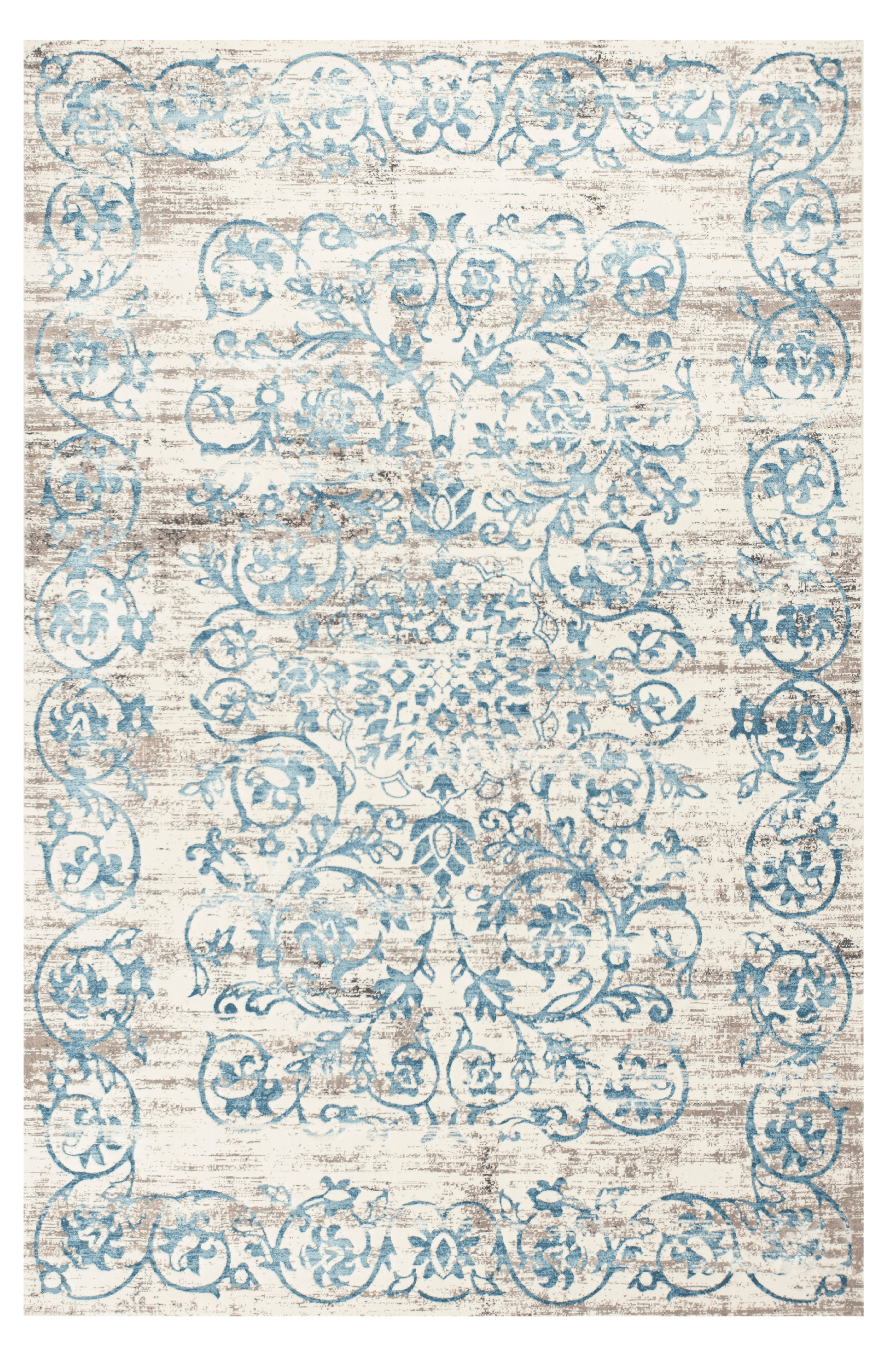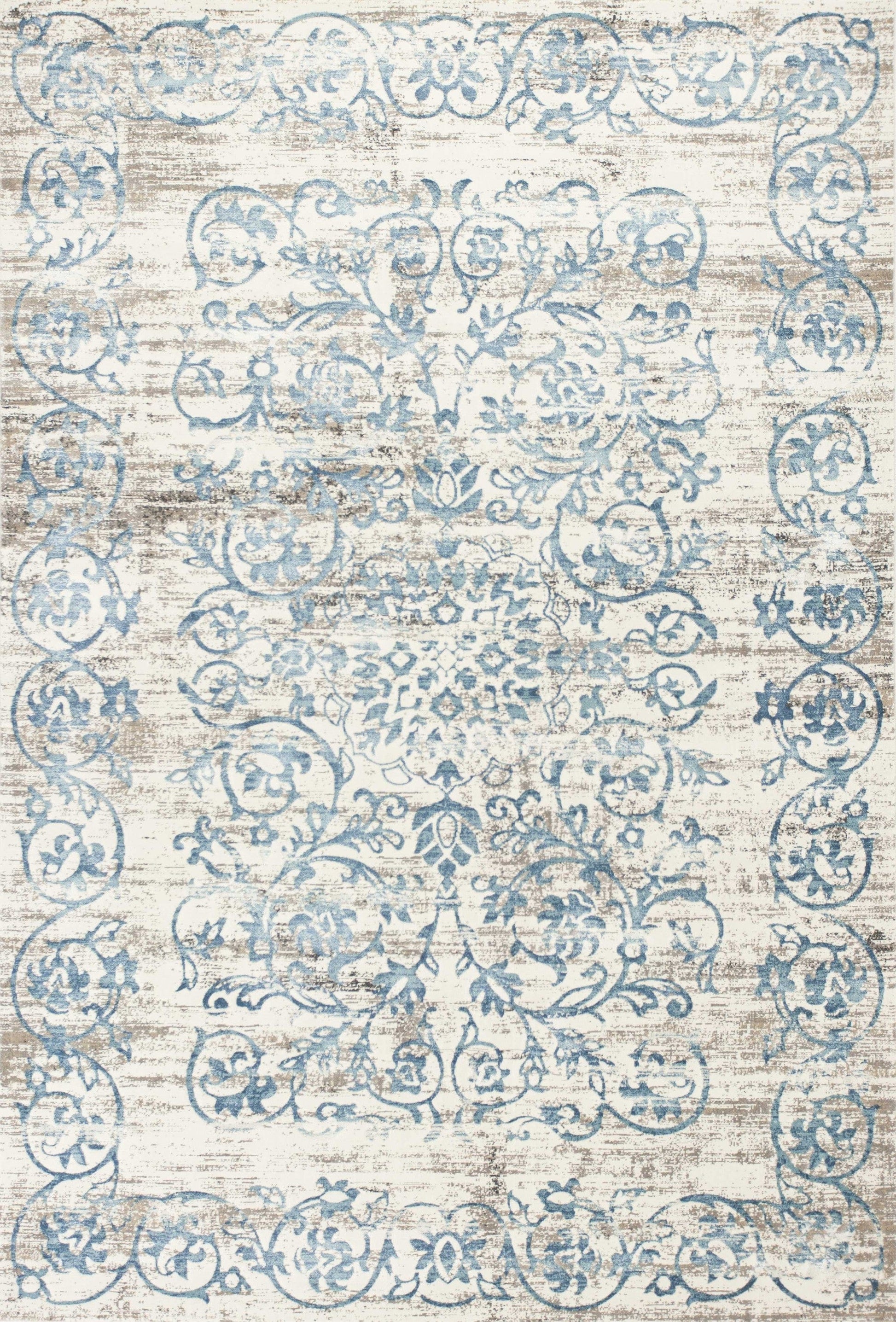 Set an inviting tone in your space with this 5' x 8' ivory and blue floral vines area rug. This rectangle shaped rug features a floral vines design in ivory and blue to give it visual interest. A classic shape marries with good looking design for your space Made in Turkey, this rug offers high quality combined with good looking designer sensibilities. Area Rugs help to give warmth and sense of home to your space. 0.5" H x 63" W x 91" D