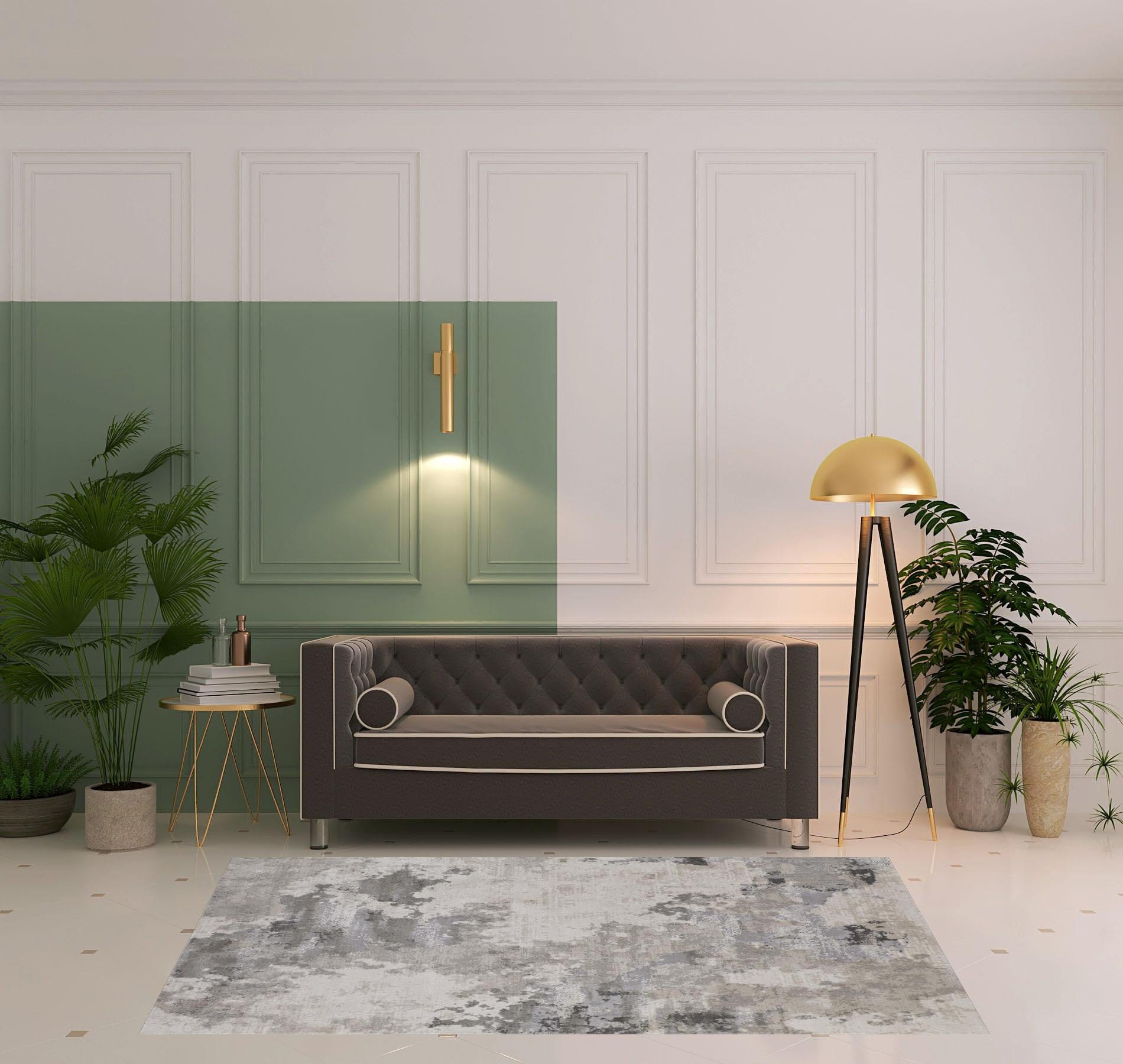 Add some artistry to your room with this 5' x 8' ivory and gray abstract stain resistant area rug. This rectangle shaped rug features a abstract design in ivory and gray to give it visual interest. A classic shape marries with good looking design for your space This superior Turkish rug represents the highest quality and is built to last. Ideal for spaces with kids and pets, this rug is stain resistant to help repel stains and spilled liquids. Area Rugs help to give warmth and sense of home to your space. 0.39" H x 60" W x 96" D