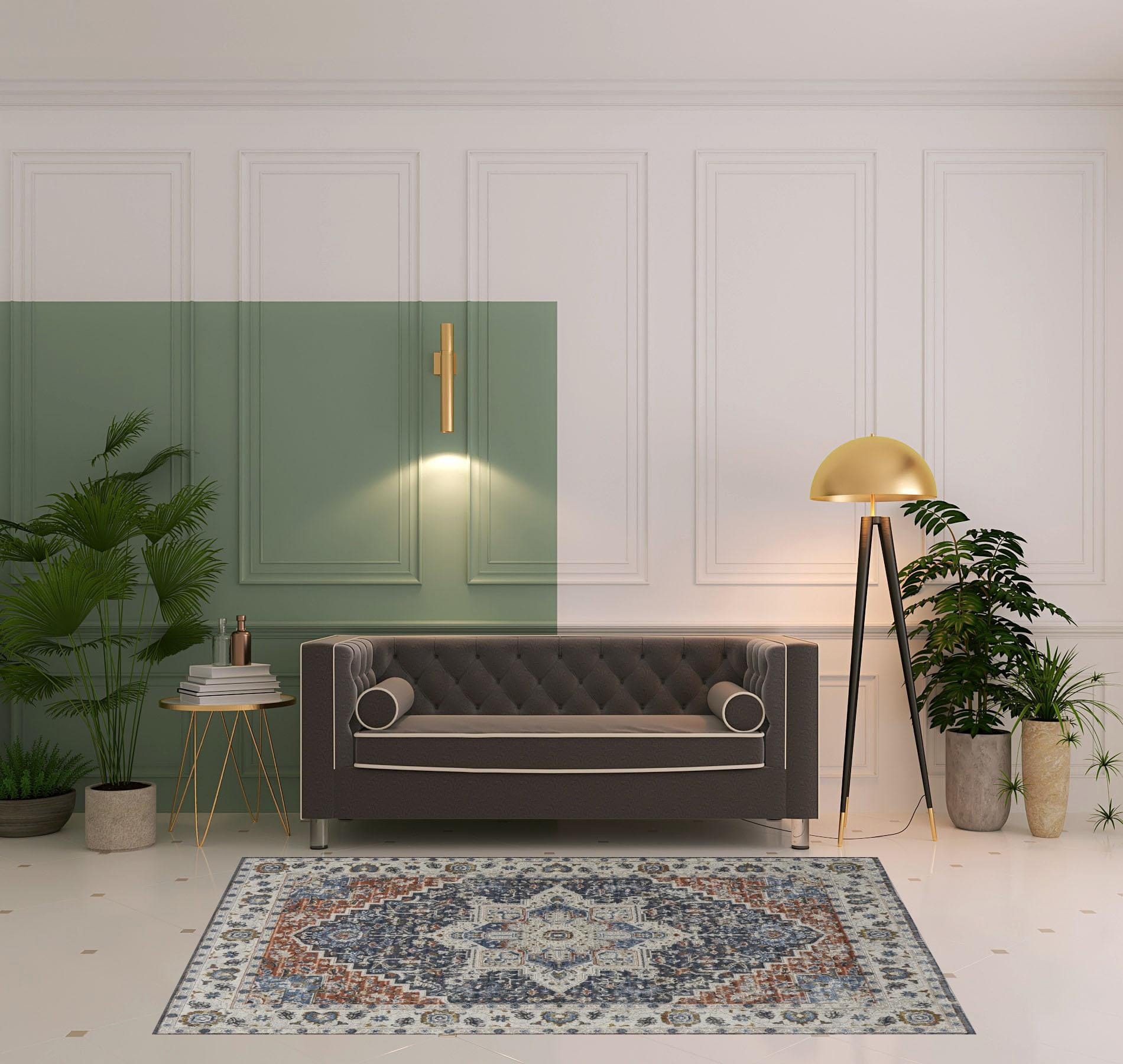 This 5' x 8' ivory blue and red floral power loom area rug with fringe, is a great way to add warmth to a room. This rectangle shaped rug features a floral design in ivory blue and red to give it visual interest. A classic shape marries with good looking design for your space This superior Turkish rug represents the highest quality and is built to last. Tassel ends bring a timeless and fashionable look to your interior. Place this area rug against a hardwood or tile floor and it will enliven your living space with style and sophistication. 0.39" H x 60" W x 93" D