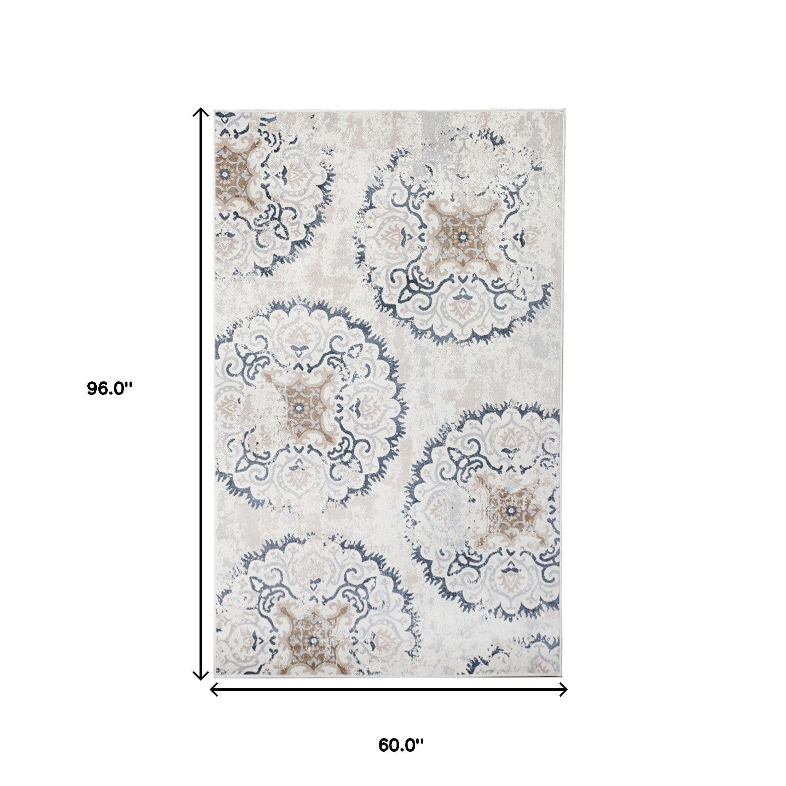 5' X 8' Ivory Geometric Medallion Stain Resistant Area Rug