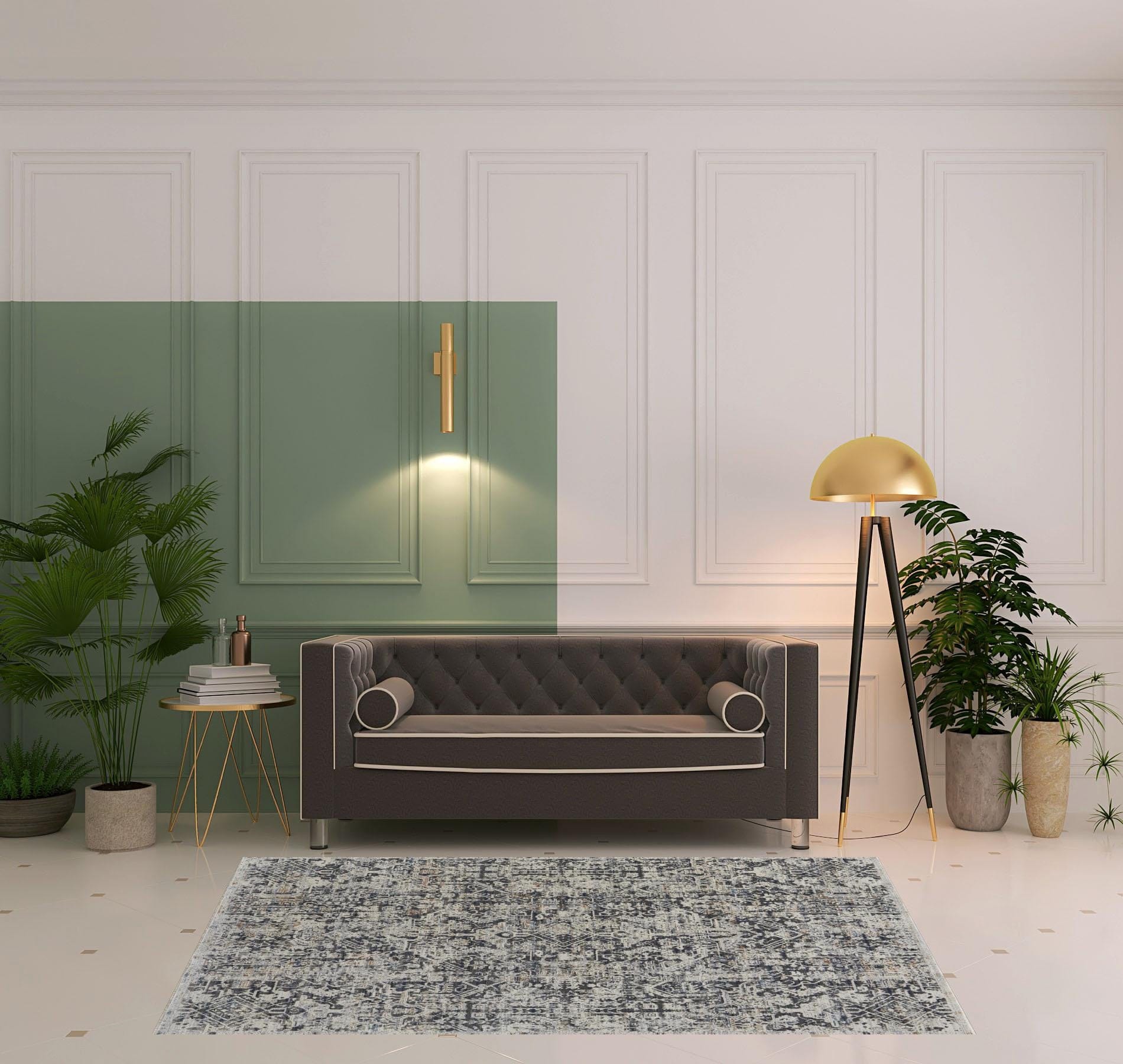This 5' x 8' ivory gray and taupe abstract power loom distressed area rug with fringe, is a great way to add warmth to a room. This rectangle shaped rug features a abstract design in ivory gray and taupe to give it visual interest. A classic shape marries with good looking design for your space Made in Turkey, this rug offers high quality combined with good looking designer sensibilities. Tassel ends bring a timeless and fashionable look to your interior. Place this area rug against a hardwood or tile floor and it will enliven your living space with style and sophistication. 0.39" H x 60" W x 93" D
