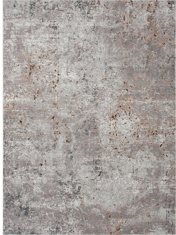 Add depth and dimension to your living space with this trendy Light Gray Modern Abstract Area Rug that features a sophisticated palette to portray nature-inspired abstract art. The distressed blend of light gray and white is accented by the bronze-gold specks resembling a marble rock surface for visual interest. Made in Turkey with a blend of polypropylene and polyester for a lightweight yet sturdy build that will withstand the elements of high-traffic areas indoors for years to come while ensuring stain and fade resistance. Easy to clean and maintain, this rug is constructed in a low pile that offers a smooth surface texture with a cozy underfoot, making it an excellent accent for high-traffic areas indoors. Bring an artistic touch of modern art into your home with this soft-toned area rug on the floor. 63” x 90” x 0.4”