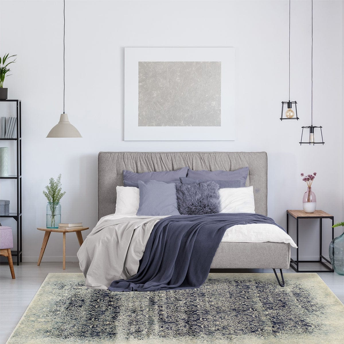 This 5' x 8' navy blue medallion stain resistant area rug, is a great way to add warmth to a room. This rectangle shaped rug features a medallion design in navy blue to give it visual interest. A classic shape marries with good looking design for your space Ideal for spaces with kids and pets, this rug is stain resistant to help repel stains and spilled liquids. Place this area rug against a hardwood or tile floor and it will enliven your living space with style and sophistication. 0.39" H x 60" W x 96" D