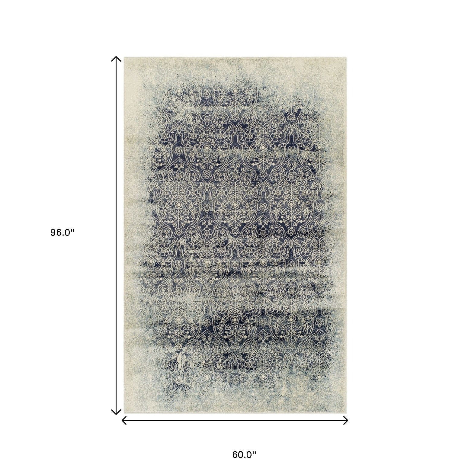5' X 8' Navy Blue Medallion Stain Resistant Area Rug