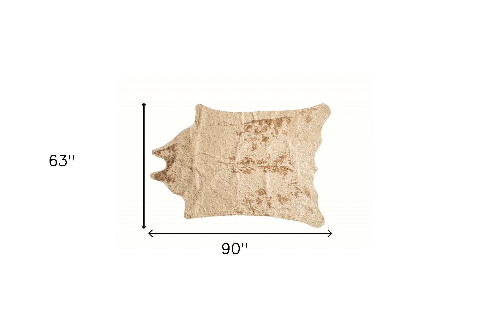 5' X 8' Off White And Silver Faux Cowhide Washable Non Skid Area Rug